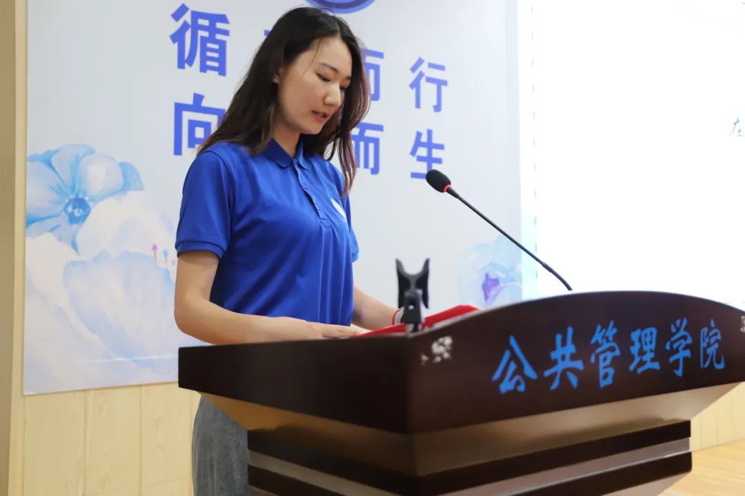 全日制毕业生代表覃红羽回忆读研三年的收获,并深刻感谢学院老师的教导以及学院为MPA同学提供的实践平台,认为选择就读MPA专业是勇敢且正确的决定。非全日制毕业生代表何荣与大家分享其读研后的感悟,认为读研不在于自由的呼吸而是使命的召唤,是自我提升的需要,是国家大事所趋。我们需要打开自身格局,把个人成长与单位、行业乃至国家发展紧密挂钩,最终实现多方共赢。在校生代表王婷婷向毕业生们道一声感谢,并表示在未来将以学长学姐们为榜样,勤勉刻苦、脚踏实地,坚守好本职任务,展现出公管人的精神面貌,奉献自己的青春力量。