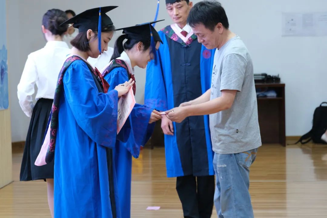 学位授予环节,周均旭宣读学位授予决定,毕业生们随着礼乐声依次上台。毕业班班主任雷文艳、钟革秋为学生整理衣冠,聂鑫为毕业生行拨穗礼,并一一合影,黎昌珍教授与魏万青教授分别和毕业生握手祝贺。最后,在全体师生的校歌大合唱中,成人直播 公共管理专业硕士(MPA)毕业典礼暨学位授予仪式圆满落幕。