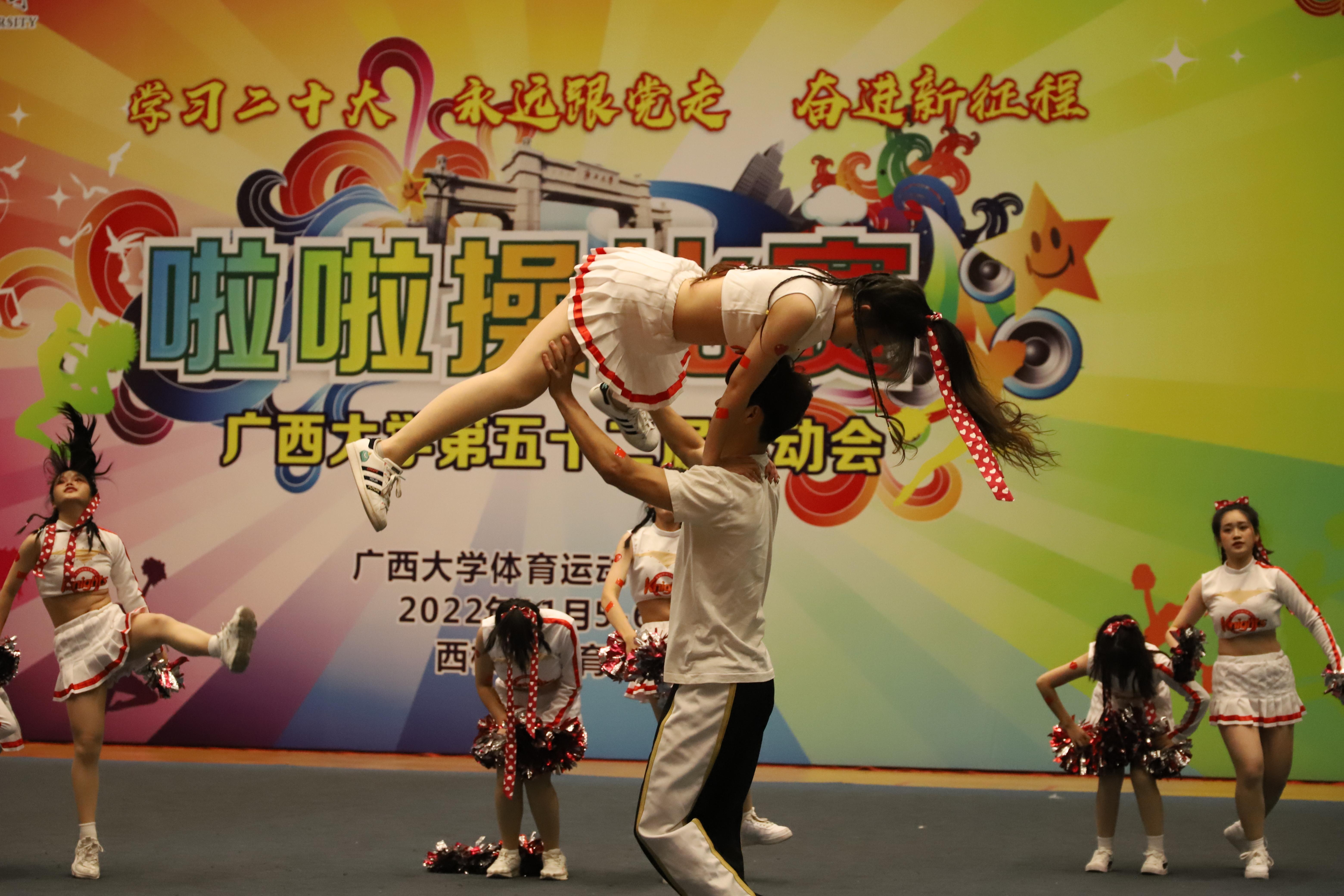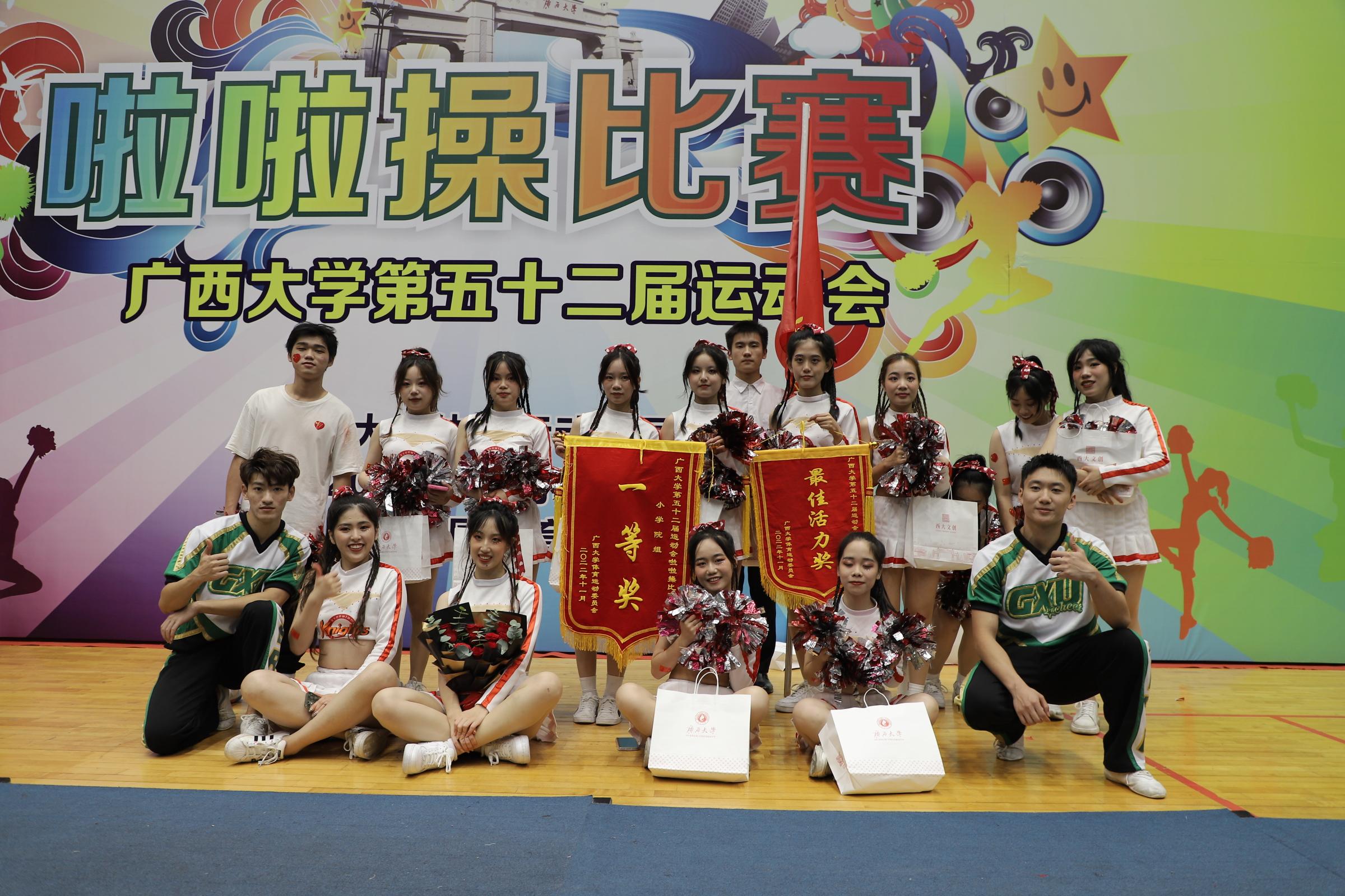 11月6日下午,成人直播 第五十二届运动会啦啦操比赛于西综合体育馆拉开比赛序幕,分为大学院组和小学院组,成人直播 代表队带着一支《Lucky Strike》闪亮登场,最终以512分的成绩征服全场,荣获小学院组“一等奖”和“最佳活力奖”。