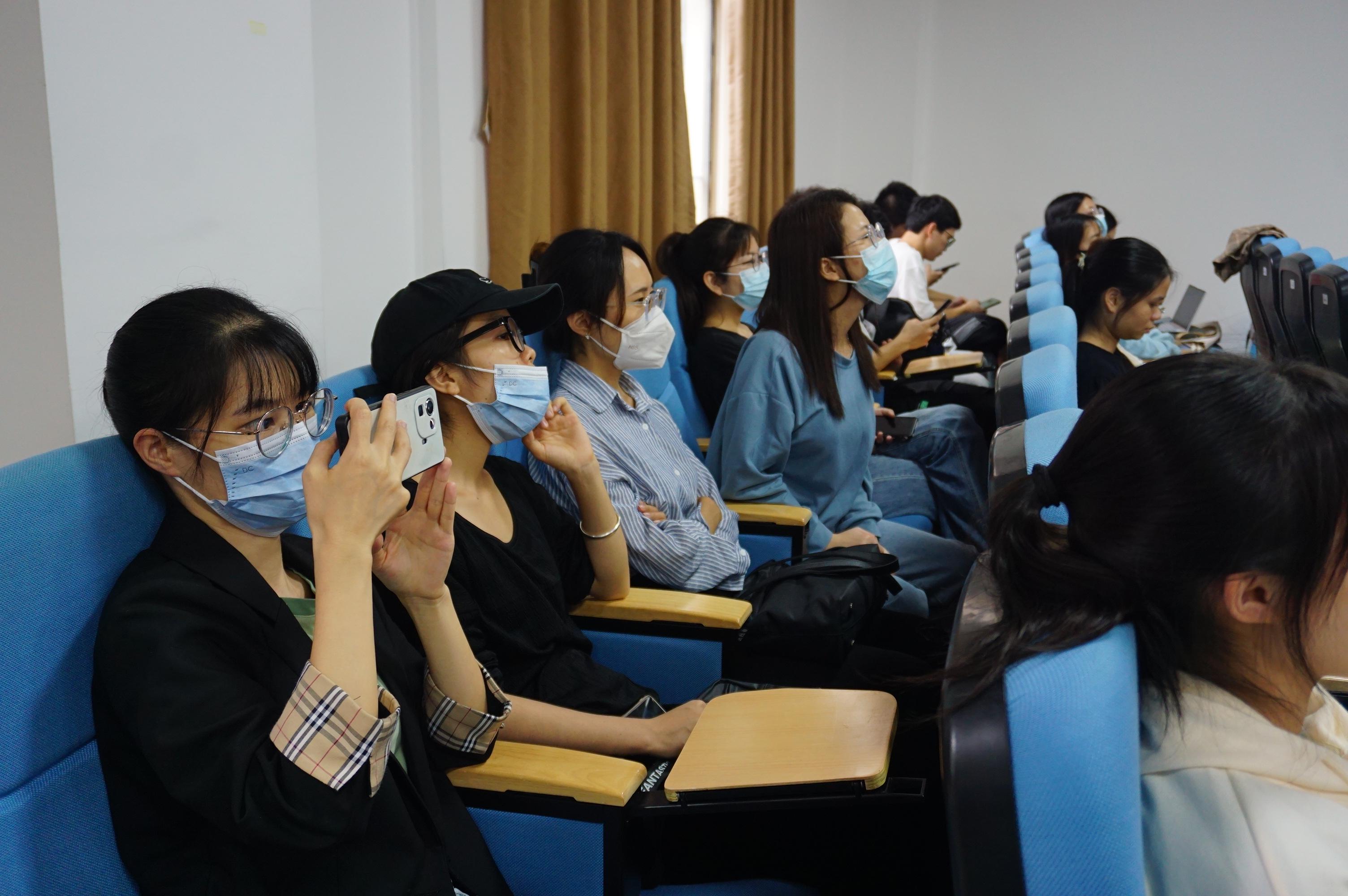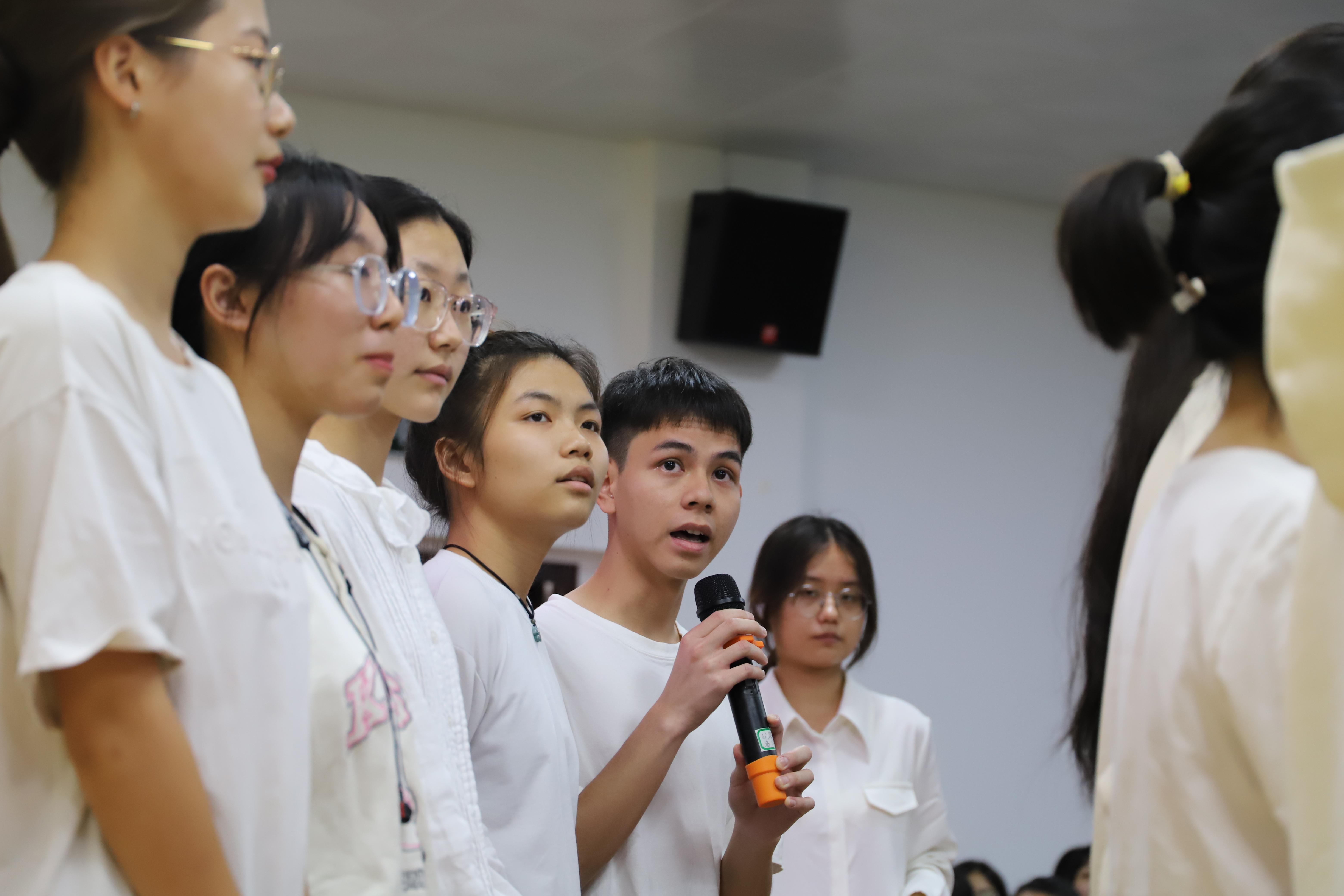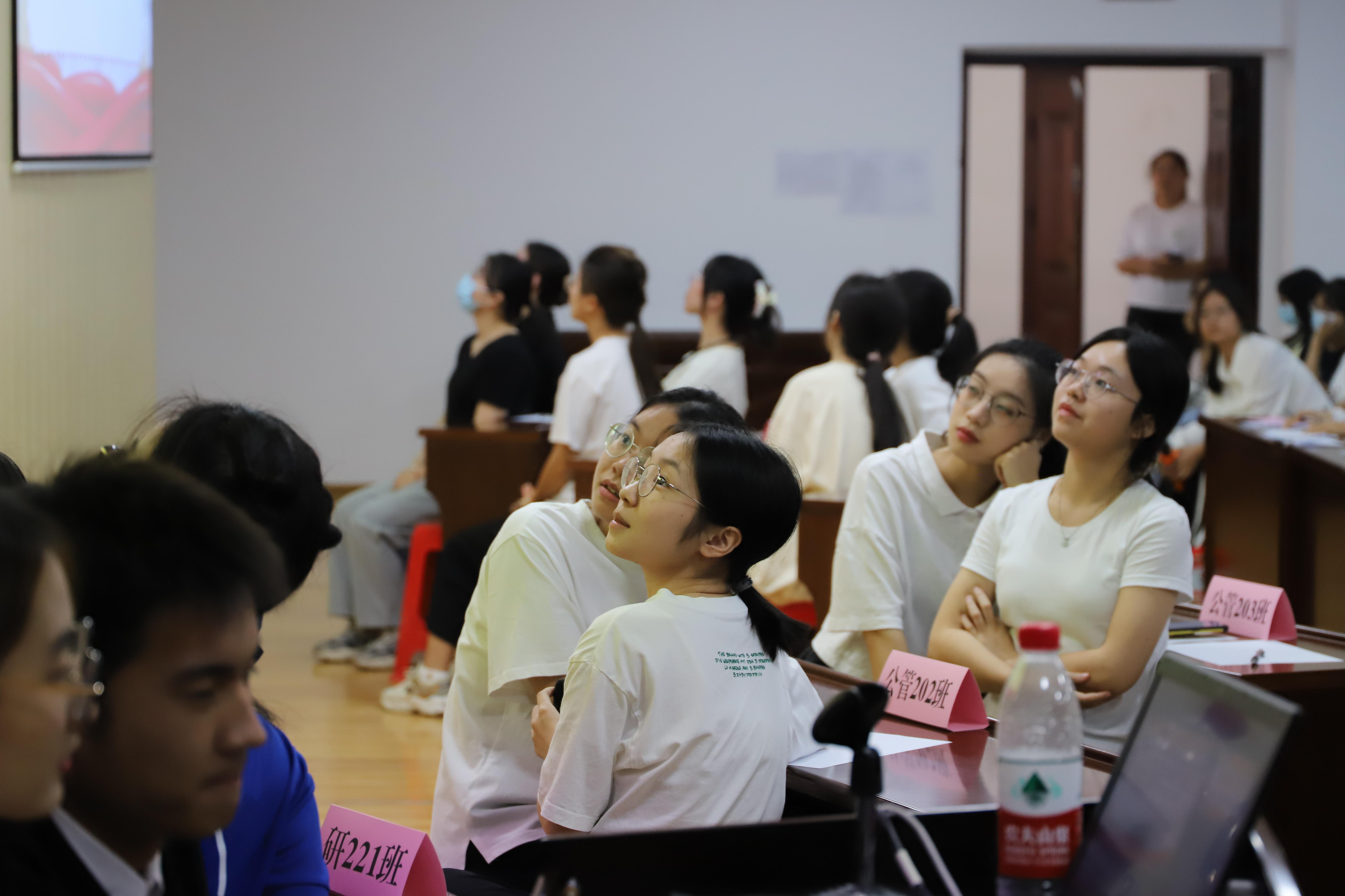 飞花令淘汰赛作为比赛的压轴环节,能够充分展现各选手的知识储备。每支队伍派出三名选手上台按照顺序依次答题,答错的选手宣布淘汰,三名选手完全被淘汰的队伍失败。根据前面几轮比赛的积分,前三轮积分高的队伍可以优先选择答题顺位几十个回合下来,公管203、211班和研222班代表队显示出强劲的实力,每班的三名大将均未被淘汰,三方互不相让,比赛逐渐白热化。直到比赛至近90题,公管203班和211班才渐显颓势,依次败下阵来。最终,研222班取得了本轮比赛的胜利。精彩绝伦的竞赛在热烈的掌声中落下帷幕。