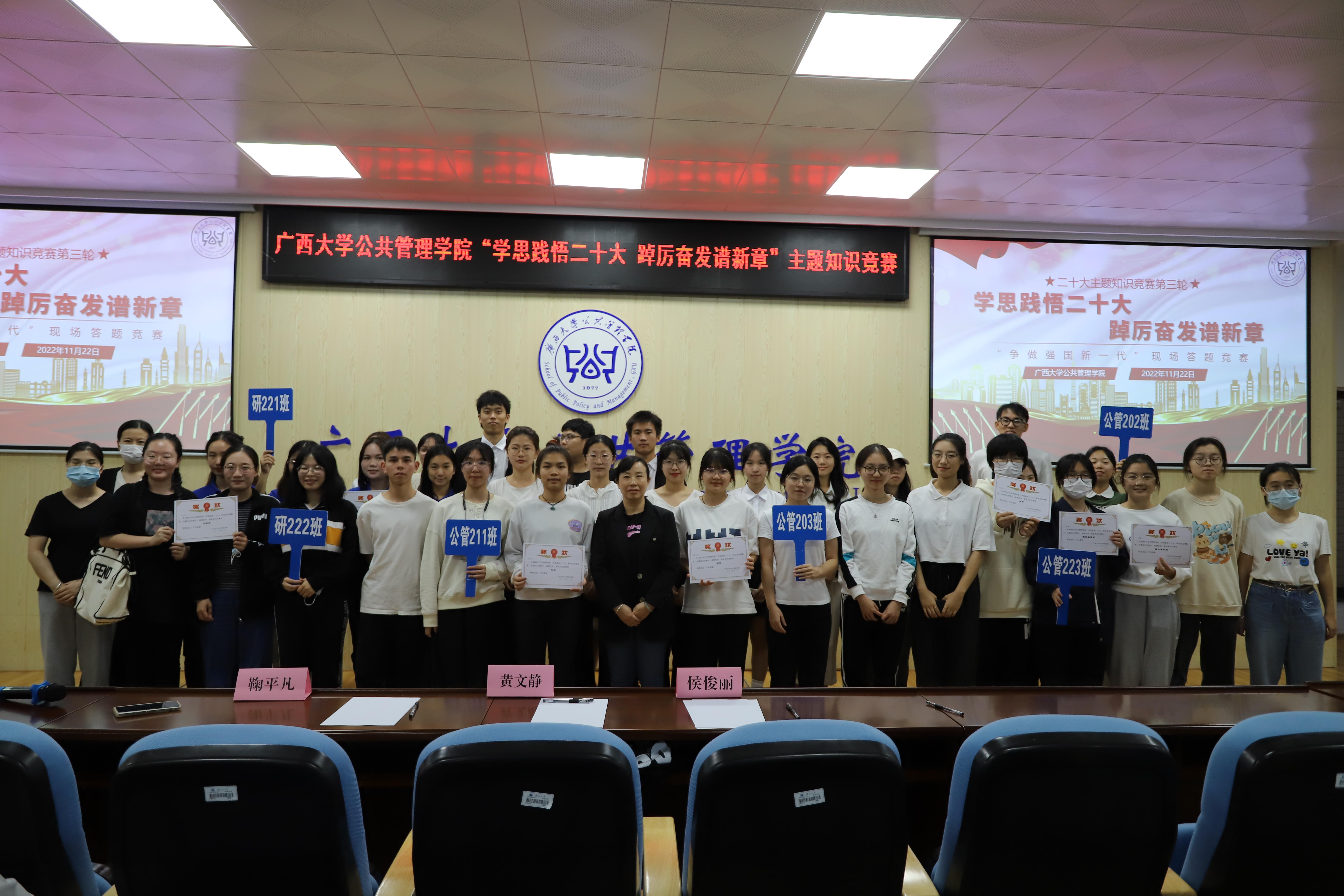 经过第一轮和第二轮的选拔,公管223班、公管211班、公管202班、公管203班和研222班、研221班6个班级的代表队入围第三轮的比赛。
