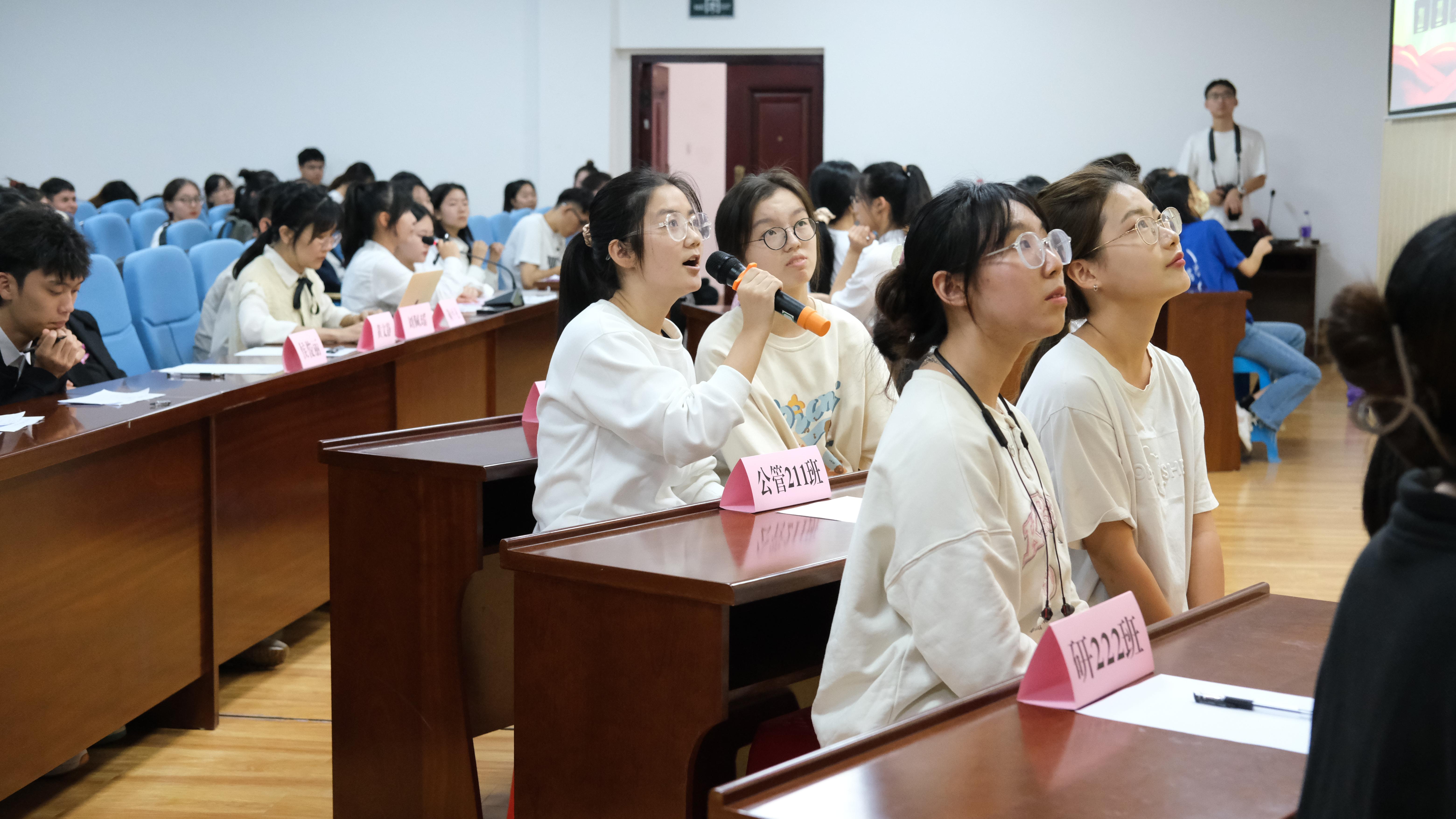 11月22日下午 “争做强国新一代”现场答题竞赛在203教室举行。本轮比赛分为四项赛程,分别是团体合作竞答赛、“二十四宫格”选答赛、团体抢答赛和“飞花令”淘汰赛,每支队伍在四项赛程中获得的积分累加,最后以总分进行排名颁奖。院党委专职组织委员鞠平凡老师、院团委书记黄文静老师、团委副书记刘佩瑶老师、学工组侯俊丽老师作为嘉宾出席比赛,预备党员、发展对象、共进连连员和各班级代表到现场观赛。