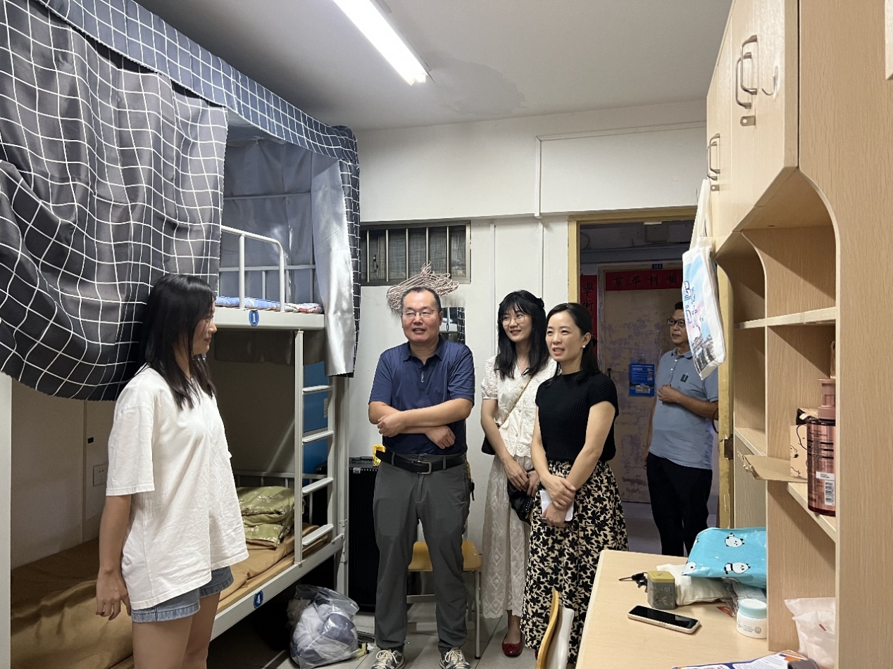 为进一步了解学院2023级新生情况,让新生充分感受到学院的温暖和关怀,帮助同学们更好地适应校园生活,9月9日晚,成人直播 院长史云贵、党委副书记庞惠、团委书记黄文静、团委副书记刘佩瑶、辅导员侯俊丽、新生班主任陈山以及团委学生会的学生骨干走访新生宿舍,给同学们送来了公管学院第一份温暖与关怀。