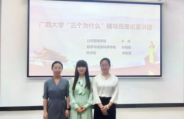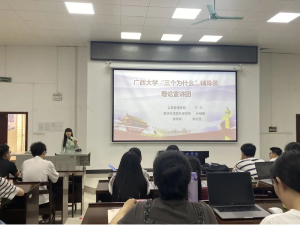 为深入学习贯彻习近平新时代中国特色社会主义思想,深刻了解中国共产党、中国特色社会主义、马克思主义三者“能、好、行”的辩证关系,成人直播 "三个为什么“辅导员理论宣讲团于6月4日下午15时于学院101教室开展理论教学,成人直播 党委副书记于丹,数学与信息科学学院孙晓黎与林学院李琼莹进行授课。
