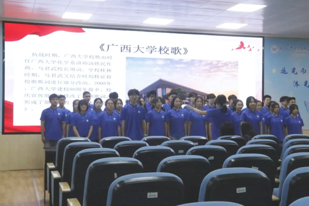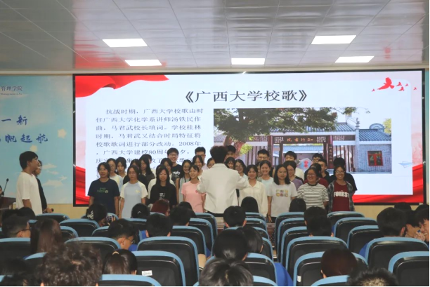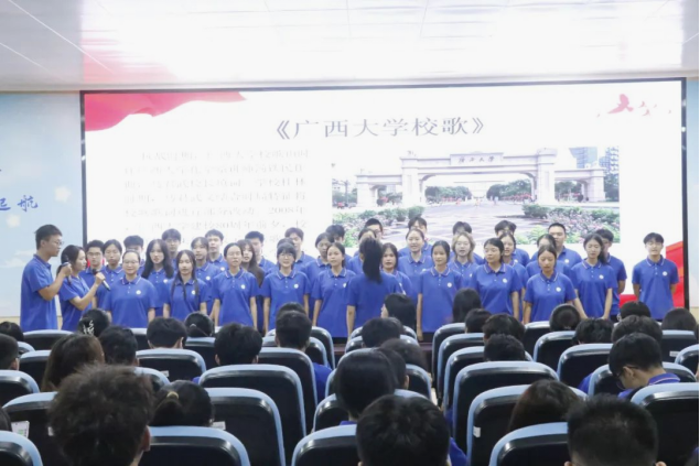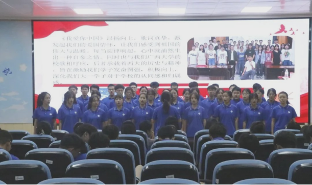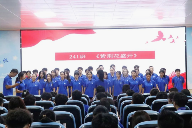 比赛环节中,各新生班级团支部以一首《成人直播 校歌》作为规定曲目和一首自选曲目,用歌声弘扬爱国主旋律,展现青年奋发向上的青春力量。