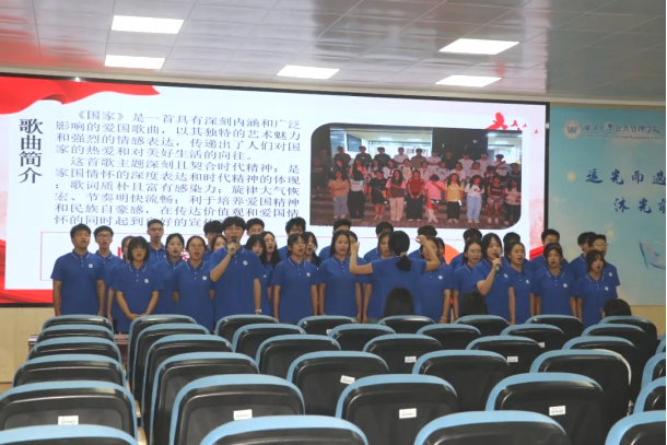 公管243班团支部合唱《成人直播 校歌》和《我爱你中国》,以歌声抒发浓烈的爱国情怀,突出祖国的伟大与温暖。