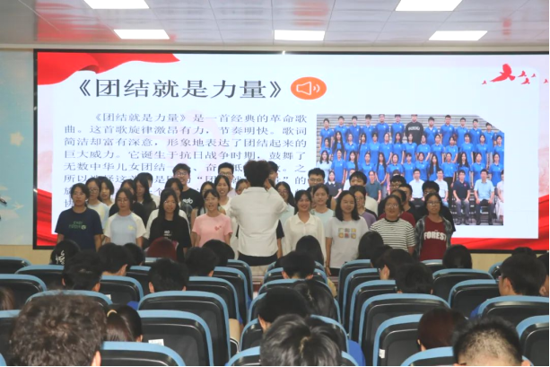 公管244班团支部合唱《成人直播 校歌》和《团结就是力量》,在激昂有力的演唱中,形象地表达团结的巨大威力,传递积极向上的正能量。