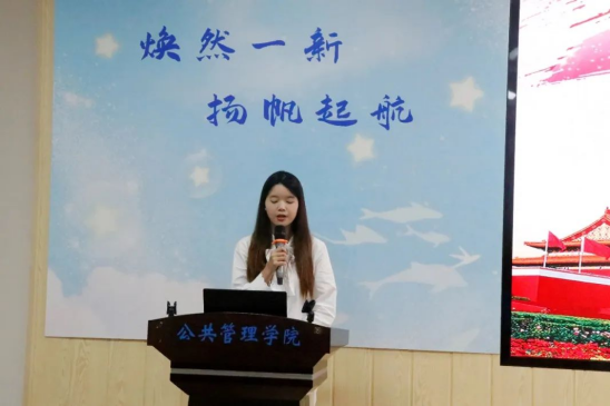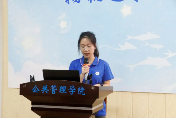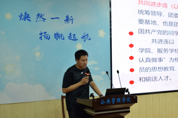 第三十二届共进连连长王华杨对上一年工作情况进行总结汇报,她表示,成人直播 共同进步连第三十二届全体成员在成人直播 党委的统筹领导,团委的具体指导下,严格贯彻落实各项工作。举办了“化作青春之火、点燃共同理想”两院联合趣味课堂知识竞赛活动,加强理论学习,传承红色基因。开展了广西壮族自治区博物馆参观暨南湖公园“三走三勤”活动,锻炼身体素质,培养集体荣誉感。同时扎实做好志愿服务工作,发扬公管学子先锋表率力量,成功发挥共进连为党组织培养和输送人才的作用。