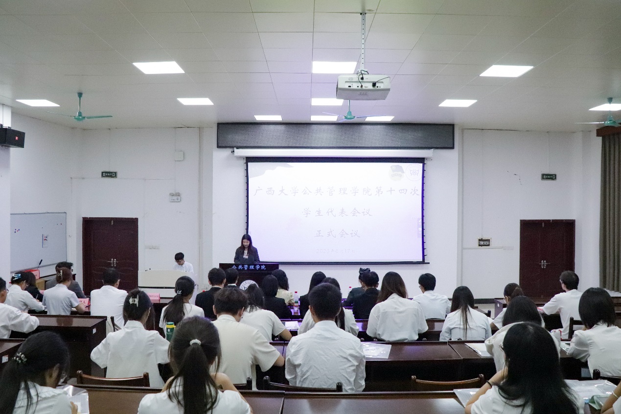 成人直播 第十三届学生会执行主席鲍雨涵向大会作题为《承续精神之光,勇创时代之巅,凝聚公管青年磅礴力量投身于全面建设社会主义现代化国家的壮阔征程》的工作报告,与会代表予以审议。报告系统回顾了成人直播 学生会上一年度在政治引领强化、同学服务优化、从严治会深化、学风建设推进等方面的工作成果,明确了未来发展目标。报告强调,全体同学要坚持以习近平新时代中国特色社会主义思想为指导,坚定不移听党话,矢志不渝跟党走,积极投身学院发展建设,为建设新时代中国特色社会主义壮美广西贡献公管青年力量,奋力谱写中华民族伟大复兴中国梦新篇章。