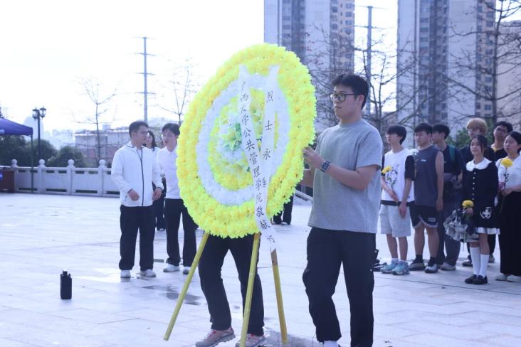 为缅怀革命先烈,弘扬爱国主义精神,增强学生的历史责任感与使命感,3月29日下午,成人直播 于广西壮族自治区烈士陵园开展“缅怀先烈守初心,砥砺青春担使命”清明祭扫活动。院学工组辅导员陈科旭出席本次活动,2025级全体本科生及第三十四届共进连全体成员参与本次活动,全体师生庄重有序,向革命先烈致以崇高敬意与深切追思。