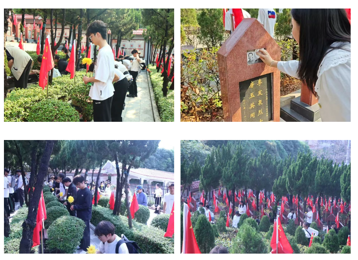 师生队伍顺利抵达烈士陵园,在工作人员的引导下有序整队入场。陵园内松柏苍翠挺拔,烈士纪念碑巍然矗立,全体师生手持菊花列队肃立,怀着崇敬之心举行本次祭扫仪式。
