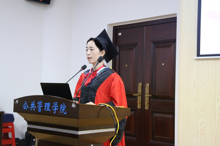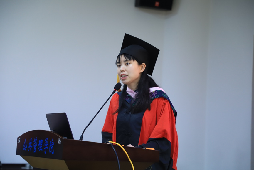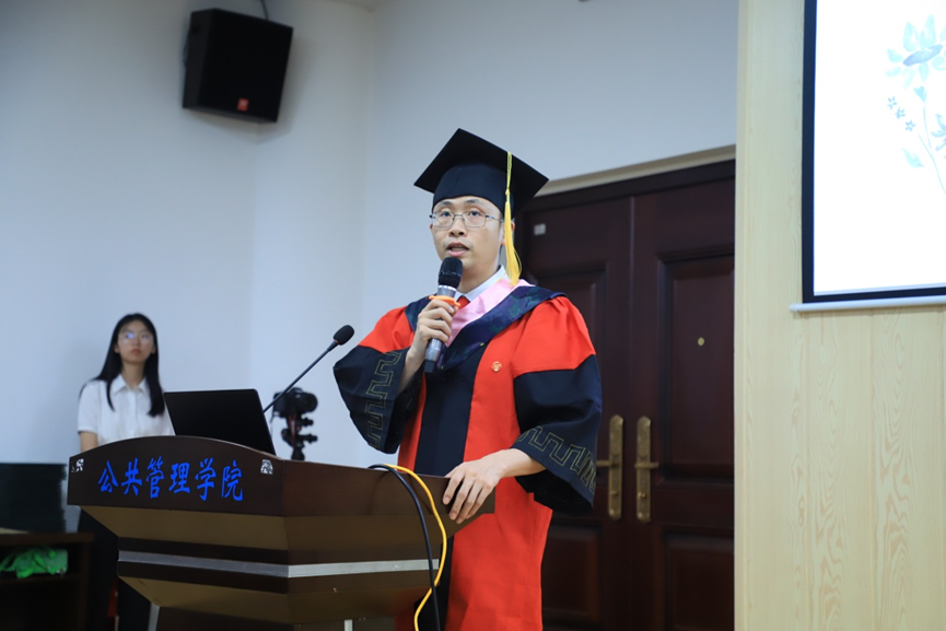 教师代表李小红副教授、学硕毕业生代表蒋文倩、专硕毕业生代表言天磊、本科生毕业生代表文颖、及在校生代表唐正昌上台发言。李小红首先向同学们道一声感谢,成人直播 公共管理事业管理专业在2022年软科中国大学专业排名的提升离不开师生的共同努力。其次祝贺同学们顺利毕业,取得阶段性圆满。在进入下一阶段之前,可能会存在激动、期待、紧张和无措的情绪,但是希望大家能在当下细细回想老师、同学们的教导与陪伴,这些将会是你们不惧困难的力量。李小红以浙江大学高中山教授的经历告诉我们在学术追求的道路上,不应仅仅只有爱好和喜欢,更多的是要责任和担当。希望我们每个公管人在日后的工作和学习中,都能挑起重担,在面临困难时都能够坚持不懈。同时也欢迎同学们在想念母校的时候,能够常回母校看看,老师们也会想念大家。