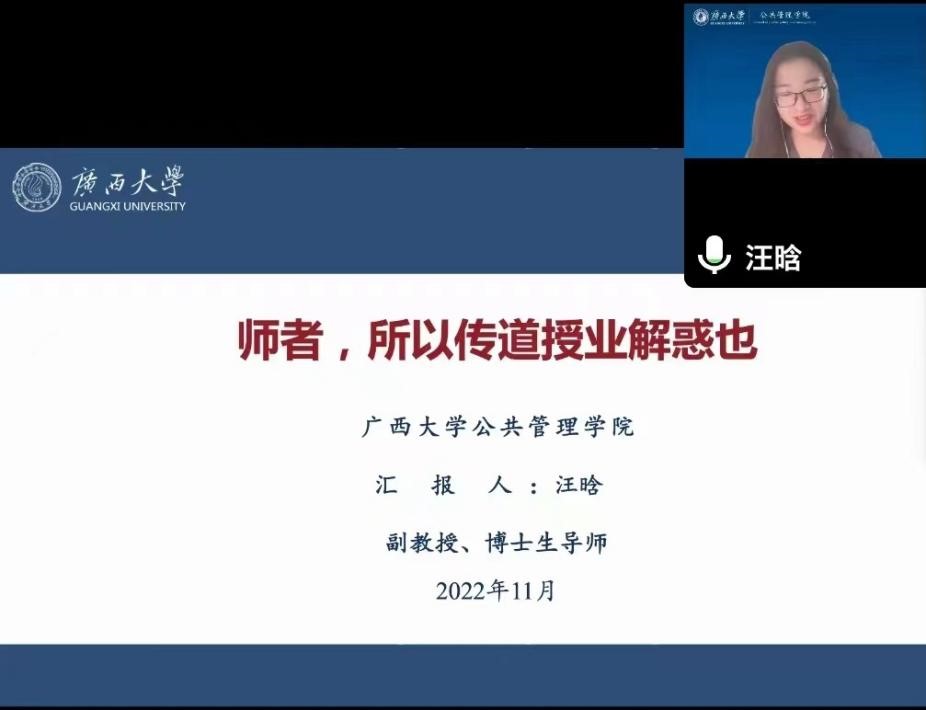 11月30日下午,成人直播 优秀教师师德师风专场报告会在成人直播 106教室顺利举行,汪晗老师以《师者,所以传道授业解惑也》为题,总结了她在教书育人这份工作中的收获与感想。本次会议采取线上线下相结合的方式进行,由学院党委副书记庞惠主持。