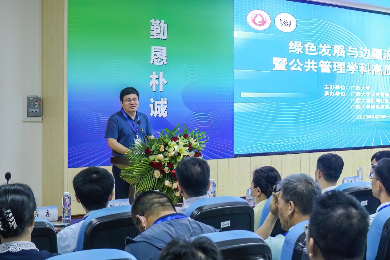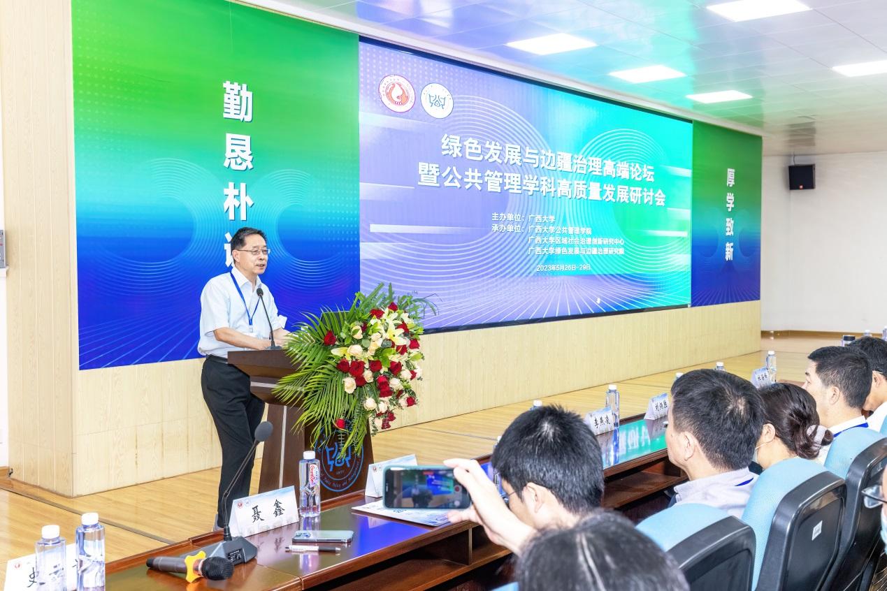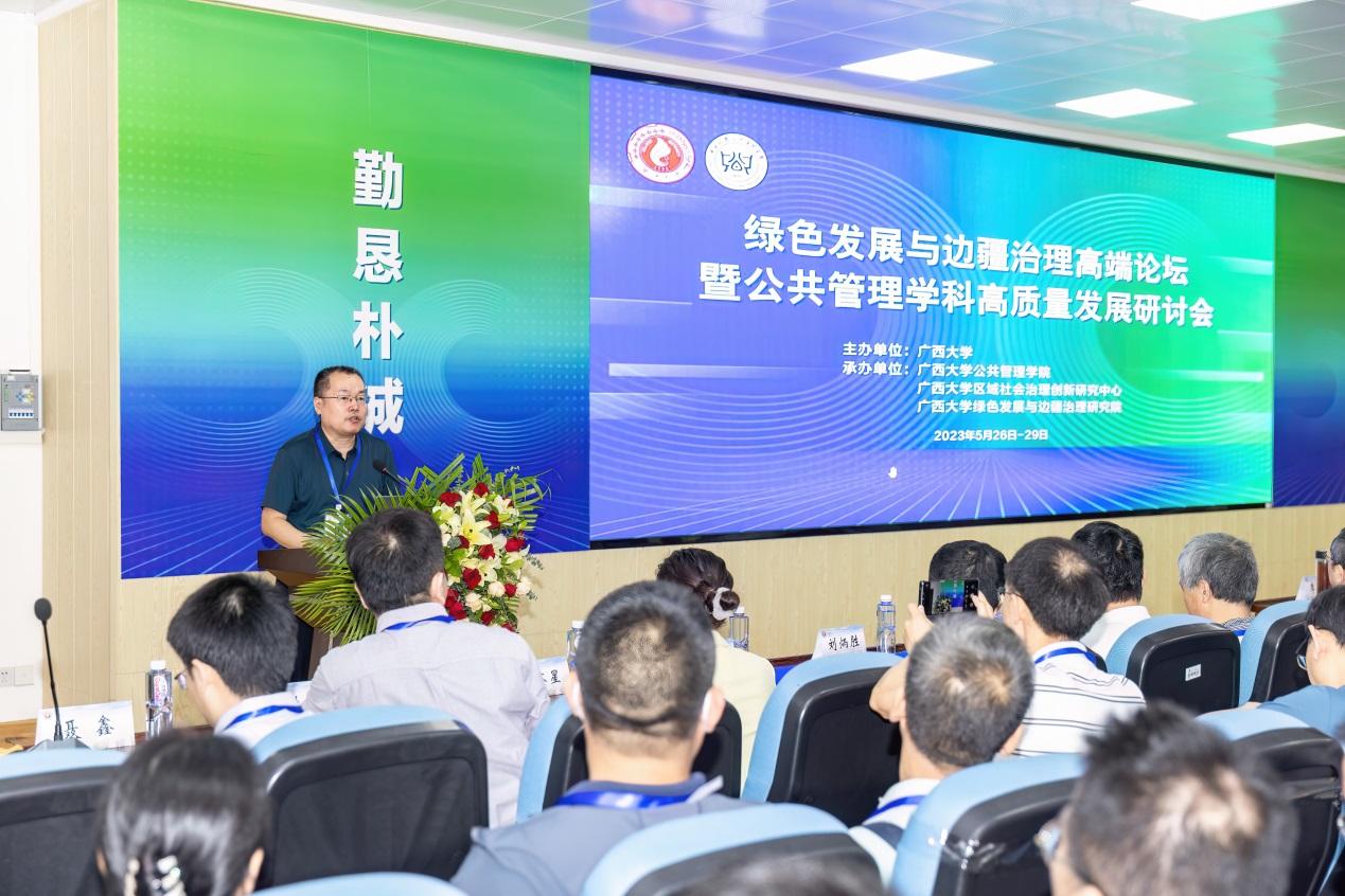 范祚军代表成人直播 对论坛的召开表示祝贺,并指出,绿色发展与边疆治理一直是哲学社会科学研究的热点、重点和难点问题。在全国上下深入开展学习贯彻习近平新时代中国特色社会主义思想主题教育之际,成人直播 举办绿色发展与边疆治理高端论坛是深入贯彻习近平总书记对广西“五个更大”重要要求、视察广西“4·27”重要讲话和对广西工作系列重要指示精神的会议,成人直播 将全面贯彻中央和自治区关于发展绿色发展和边疆治理的指示精神,为边疆开放发展、新时代广西开放型经济发展继续提供智力支持与人才支撑。成人直播 聚焦“绿色”“民族”“边疆”问题研究,科研成果显著,学院整体建设水平实现跨越式发展,希望学院以此次高端论坛为契机,继续探索“边疆治理”的绿色路径,为学校“双一流”建设和广西经济社会高质量发展贡献力量。