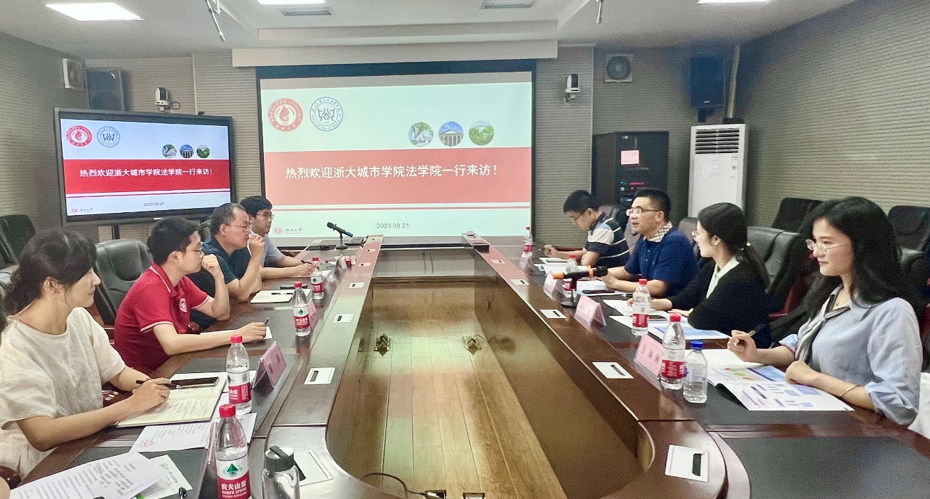9月21日,浙大城市学院法学院学科负责人许才明、公共管理系主任张岚一行4人到成人直播 调研交流。成人直播 党委书记聂鑫、院长史云贵、副院长陈林、行政管理系系主任曾凡军、办公室主任龚丽华参加了座谈交流。