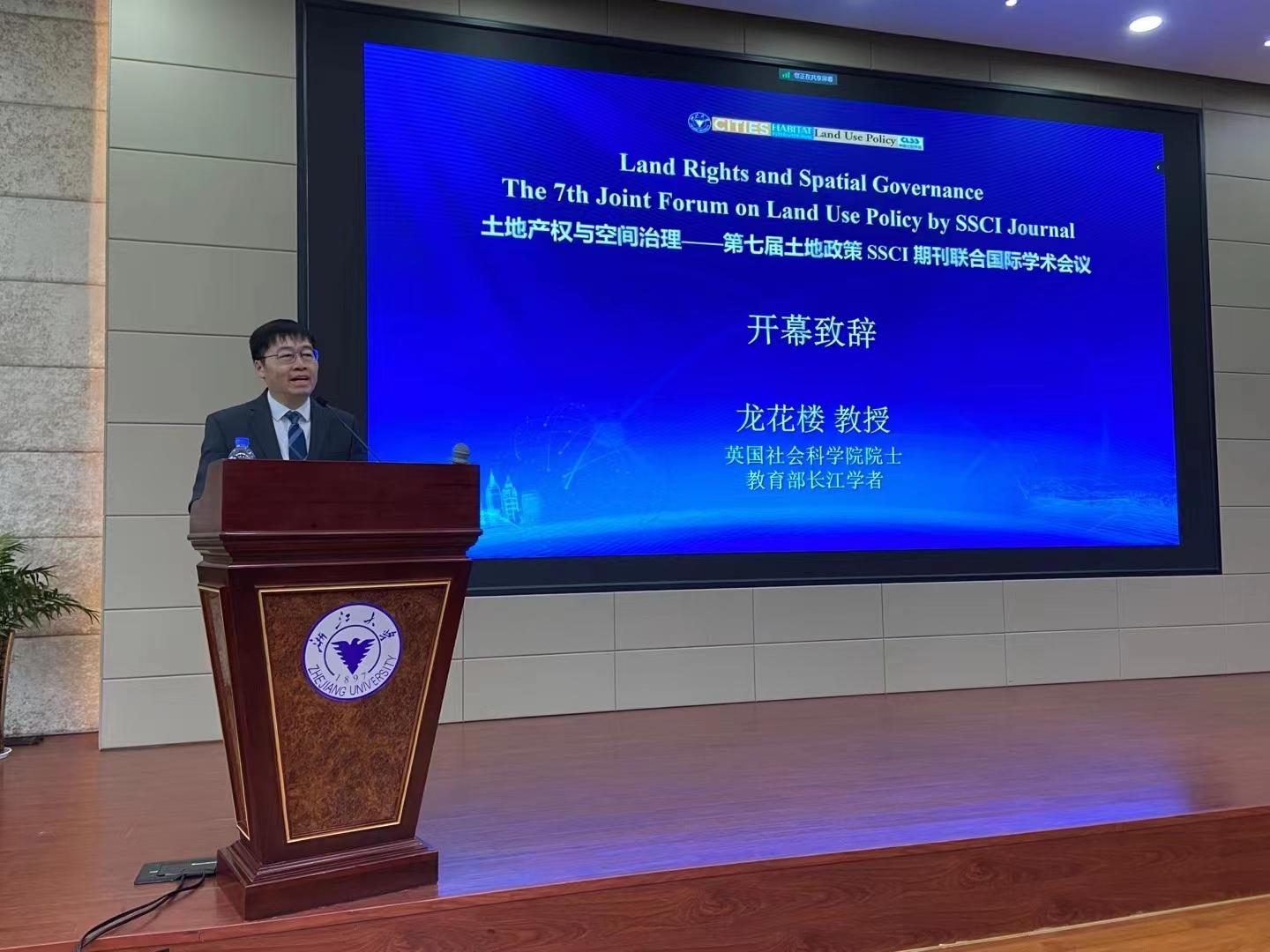 2023年10月13-15日,由浙江大学、Cities、Habitat International、Land Use Policy、《中国土地科学》编辑部联合主办的“土地产权与空间治理”——第七届SSCI期刊联合国际学术会议在浙江大学召开,成人直播 教授、Land Use Policy编委龙花楼教授担任本次会议大会主席,代表会议主办方致开幕辞。