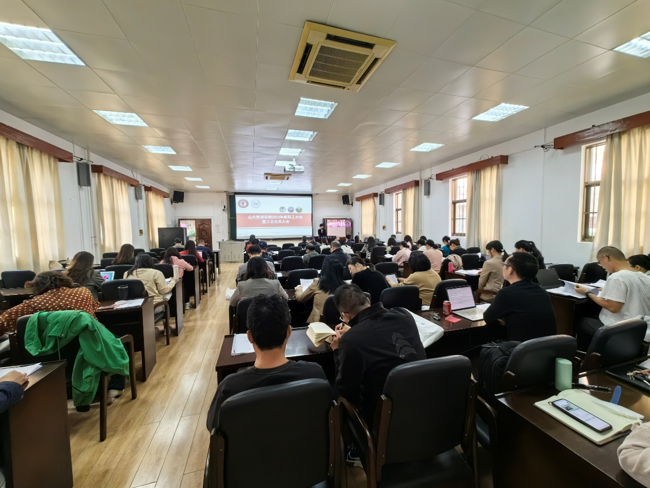 陈林副院长代表学院分工会作2023年度分工会工作报告,她指出:经过全体工会委员的共同努力,较好地完成了2023年度的各项分工会工作,得到了全体工会会员们的一致认可。全院教职工还听取了学院财务工作报告、会议提案工作报告。