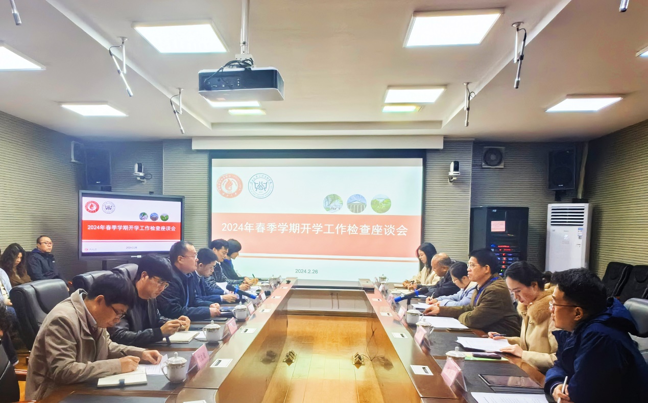 2月26日上午,校党委常委、副校长宁旭初带领财务处、教务处、后勤基建处等部门负责人到学院检查2024年春季学期开学工作。座谈会由聂鑫书记主持。学院班子成员、系主任、办公室主任、团委书记、各业务秘书等参加了座谈会。