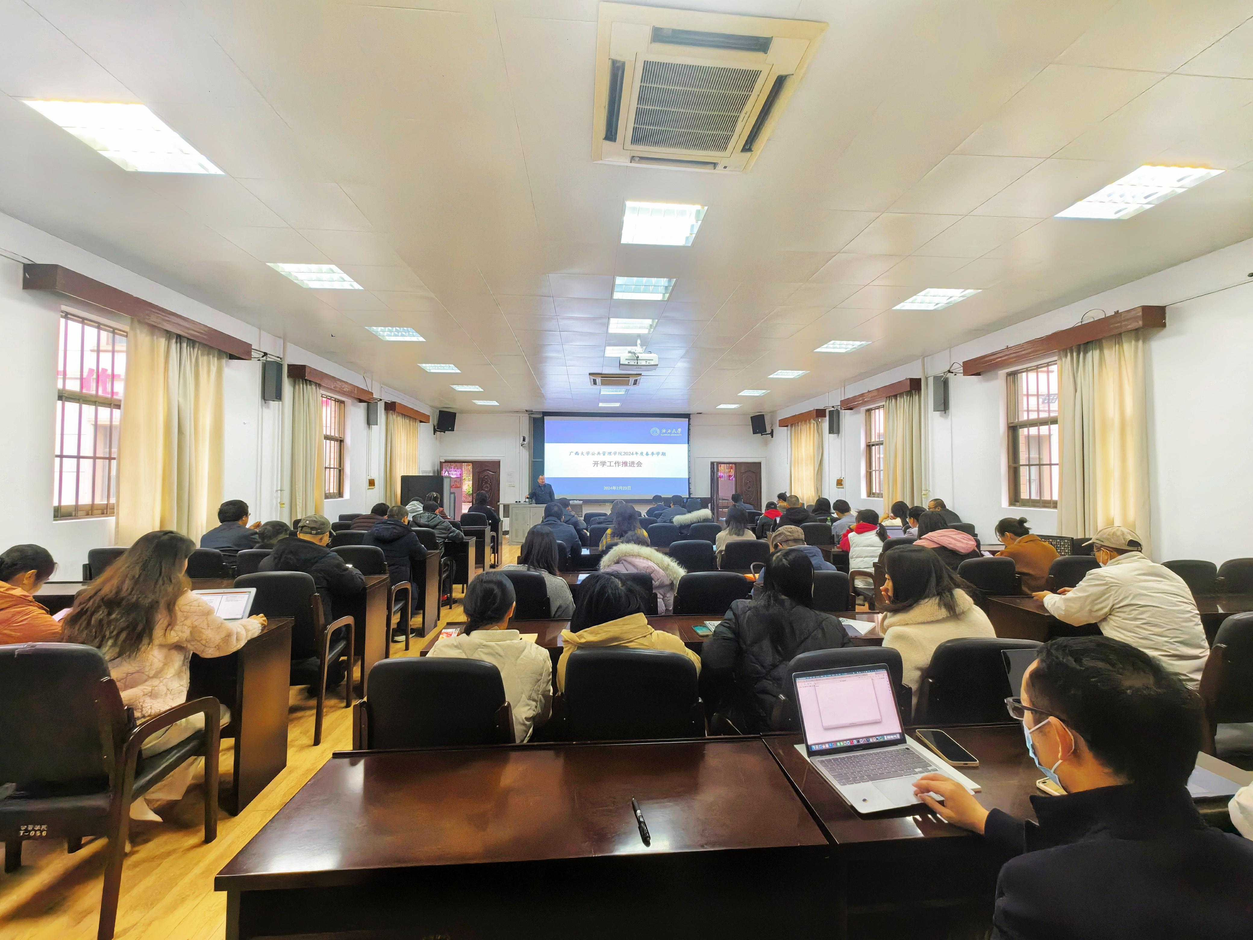 史云贵院长对2024年春季学期开学工作进行了布置。他强调,开学第一周要抓好“六个一”工作:开好第一次全院大会、第一次班子会、第一次系会议、第一次班会、第一次组会,讲好第一次课。学院也将继续围绕“绿色”“民族”“边疆”“东盟”这一学科特色进一步打造好学院的教学科研团队。他表示,新学期学院将继续加大人才内培外引的力度,积极改善办学环境,为全院师生提供一个良好的学习环境。同时学院还将成立院庆筹备领导小组,以2025年学院成立二十周年为契机,通过积极办好“寻是杯”华南片区公共管理案例大赛、打造学院二楼学科建设文化长廊等,将“西大公管”这张名片宣传好。