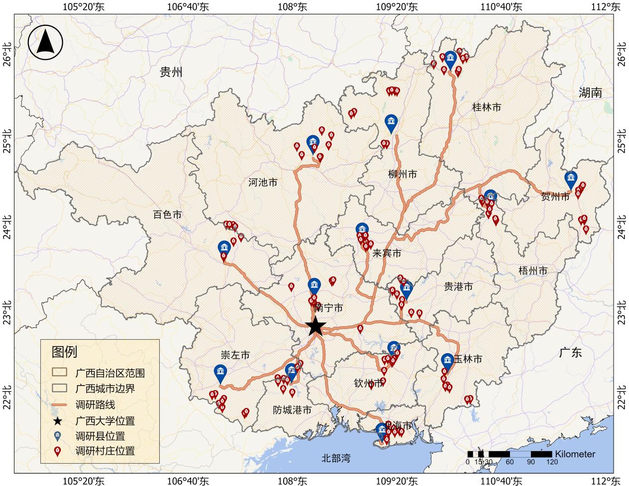 2023年9月中旬-2024年1月,公管学院依托毕业集中调研实习的实践课程,派出了近80名本科生、近20名硕士生和博士生分批前往了位于广西14个市开展实地调查工作,总计走访了广西80个村庄的649个农户。2024年2月,公管学院在全校范围内招募了返乡调查员,28位来自成人直播 、工商管理学院、农学院、马克思主义学院的本科生和研究生利用春节返乡的契机对数据库的相关内容进行了最后的补充。