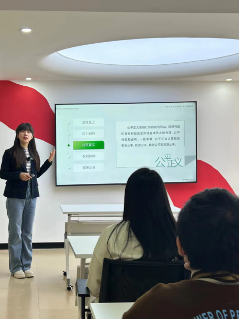 专业引导,深入浅出:于丹老师从成人直播 五有领军人才、全面依法治国的行动指南、大学生如何提高法律素养三个维度,通过生动的案例讲解、视频观看,系统阐述了习近平法治思想的核心要义和行动指南。在场同学认真倾听,深刻领会。