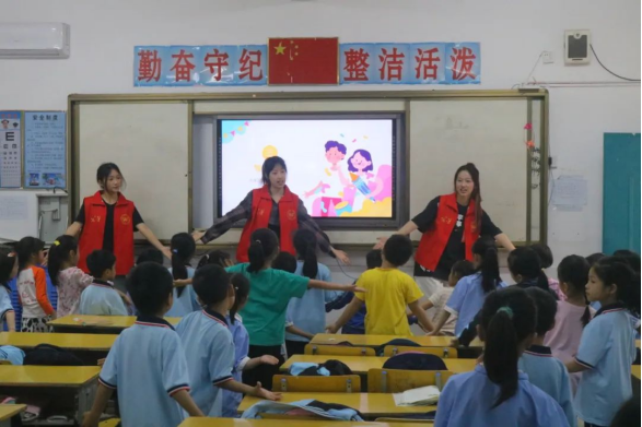 青春扬风采,起舞动年华。志愿者们别出心裁地准备充满活力的舞蹈。跟随着志愿者们的示范,学生们认真学习舞蹈动作,体验舞蹈的乐趣。《我是祖国的花朵》的舞蹈,增强学生的自我认同感与价值感。在《一起向未来》舞蹈中,他们体会到音乐律动带来的舒畅身心,加深民族自豪感。将特色舞蹈与三月三文化知识相结合,让学生在追求自我认同中找寻社会价值,在加强自我价值感中,认可民族文化价值,坚定民族文化自信。