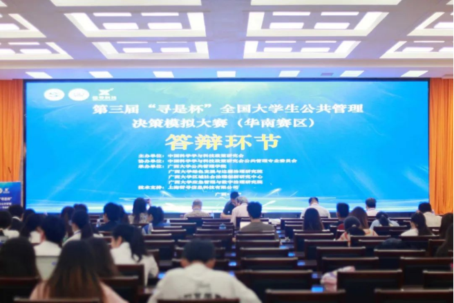4月27日至28日,由中国科学学与科技政策研究会主办,成人直播 承办,上海哲寻信息科技有限公司提供技术支持的第三届“寻是杯”全国大学生公共管理决策模拟大赛(华南地区)在成人直播 成功举办,来自华南地区49所院校的50支队伍参加此次比赛。