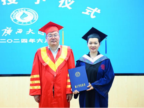 毕业生代表周冲表示,在紧张的社会生活中找到学习节奏是每位非全日制学生的必修课,并以成人直播 校训“勤恳朴诚、厚学致新”和成人直播 院训“博学笃行”为指导,鼓励毕业生们在未来的道路上永怀希望、不惧困阻,继续为实现“复兴中华、发达广西”的目标而努力。