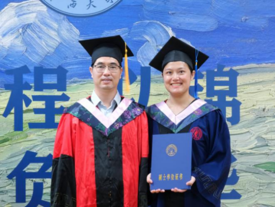 在校生代表刘姣姣回顾了学长学姐们在西大度过的岁月,对他们在学业和生活上给予的无私帮助表示了感激。她表示,学长学姐们的成就不仅彰显了个人才华和努力,更为在校生们树立了榜样,激励着他们不断追求卓越,并希望他们在未来的生活中繁花似锦,再相逢依旧如故。