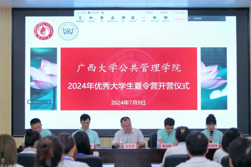 7月9日上午,成人直播 2024年优秀大学生“博学”夏令营正式拉开帷幕。成人直播 院长史云贵、副院长周均旭、副院长覃志敏、MPA教育中心副主任熊斌出席了开营仪式。此次夏令营是成人直播 连续第六年举办的优秀大学生“博学”夏令营,以“线上+线下”的形式开展,来自全国40多所高校的70余名营员相聚云端、汇聚校园。