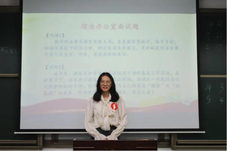 李嘉怡、吴桂金分享了自己在模拟招聘会中的心得体会,她们表示,这次活动帮助她们了解选调生的流程,积攒实战经验,同时也发现了自身存在的缺漏,也指导未来针对性地学习专业知识,锻炼实践能力。石伊荞以工作人员视角提醒在座同学,在将来面对正式考核时,需注重细节管理,稳扎稳打,确保考试流程准确无误。