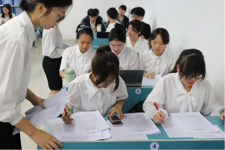 在面试环节。工作人员则组织9名应聘者进行现场抽签,在教室外候场准备。应聘者按照抽签顺序进入面试现场,先进行简短的自我介绍,随后就应聘岗位的面试问题进行作答,展示自己的应聘优势与专业能力。面试官们根据面试者的现场表现进行评分。