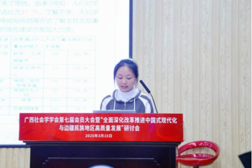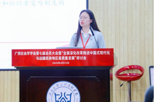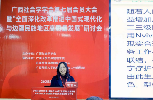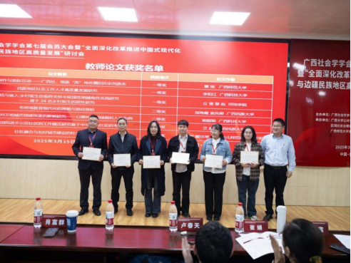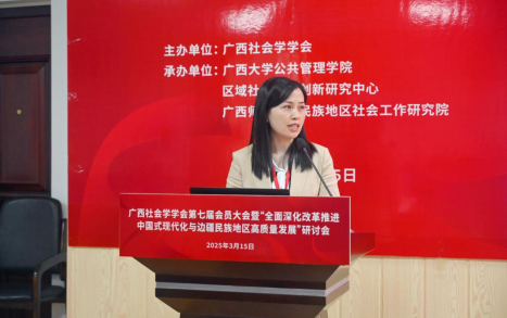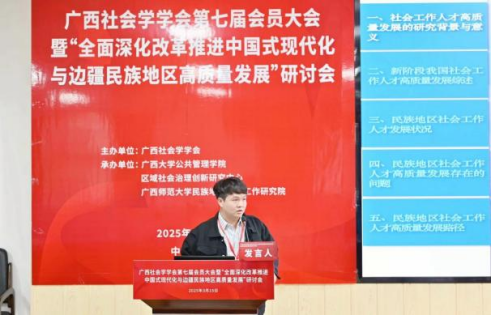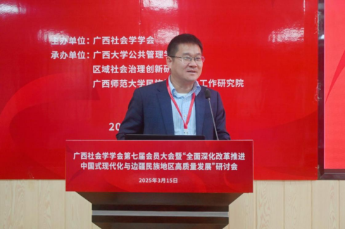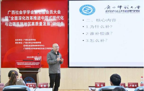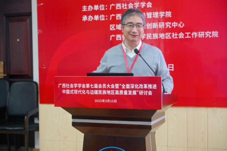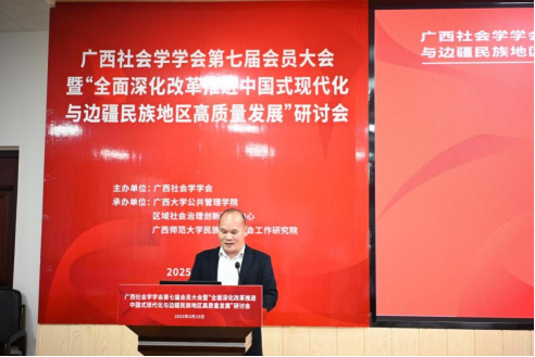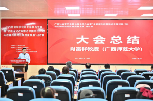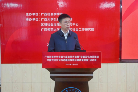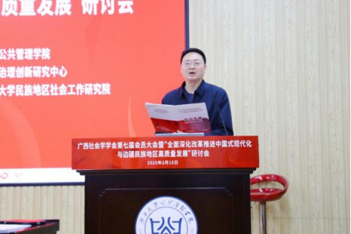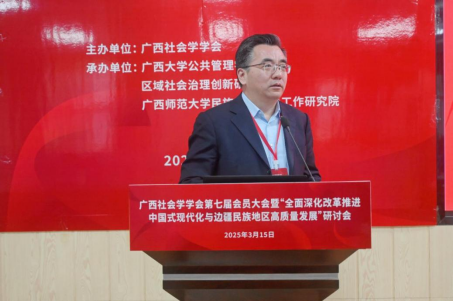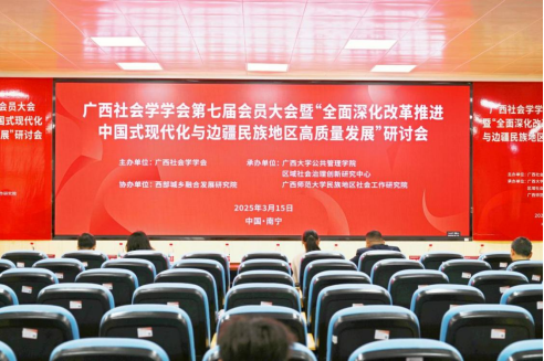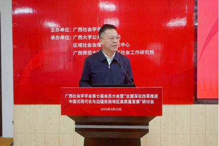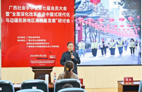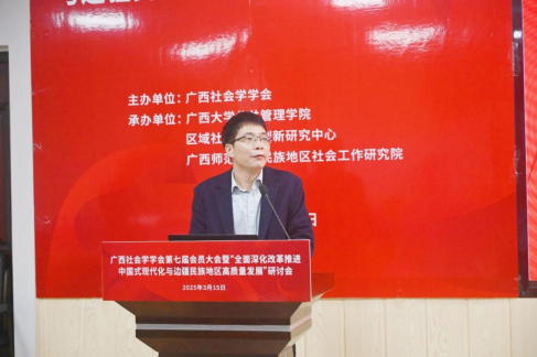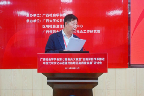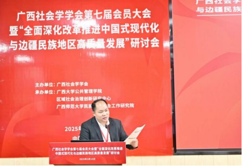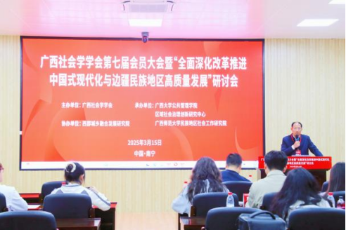 2025年3月15日,广西社会学学会第七届会员大会暨“全面深化改革推进中国式现代化与边疆民族地区高质量发展”研讨会在成人直播 成功举办。活动由广西社会学学会主办,成人直播 、区域社会治理创新研究中心、广西师范大学民族地区社会工作研究院联合承办,得到了广西人文社会科学重点研究基地西部城乡融合发展研究院的支持。