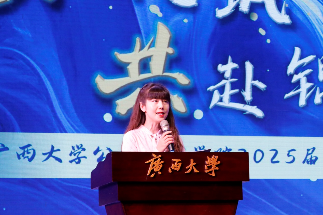 院党委副书记于丹对2025届毕业生表达了衷心的祝贺,对过去一年成人直播 学子在专业学习、科研创新、技能竞赛、团学工作及社会实践等领域取得的卓越成就进行总结,肯定了成人直播 斐然的育人成效。借此,于丹激励成人直播 学子树立“看齐意识”,学习优秀榜样,深悟“勤恳朴诚”的校训精神,传承“博学笃行”的院训精神,为建设壮美广西和社会主义现代化强国贡献青年力量。她鼓励成人直播 毕业生,在探索中前进,在实践中成长,携“公管精神”,绘精彩人生,为谱写全面建设社会主义现代化国家新篇章拼搏奋斗。