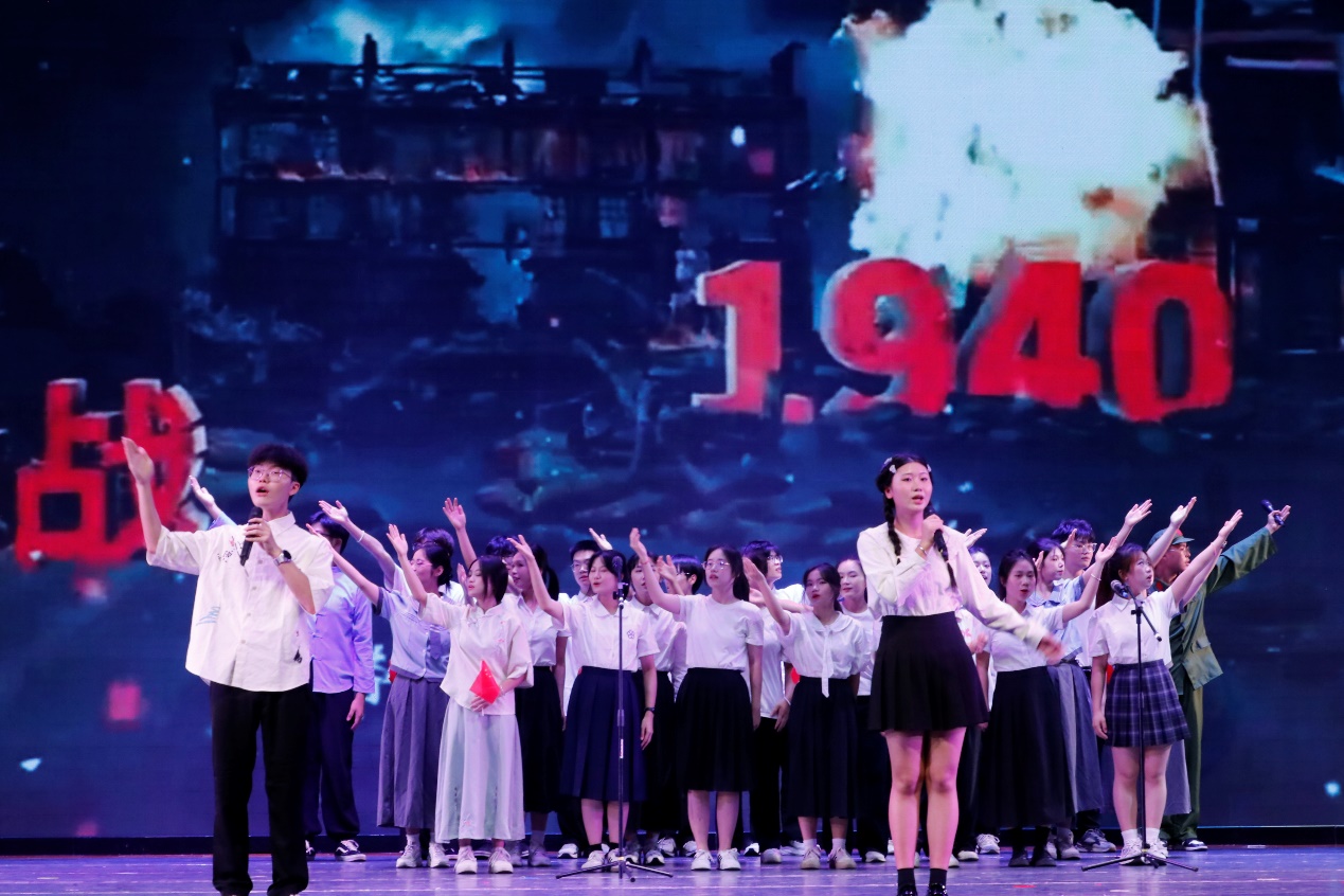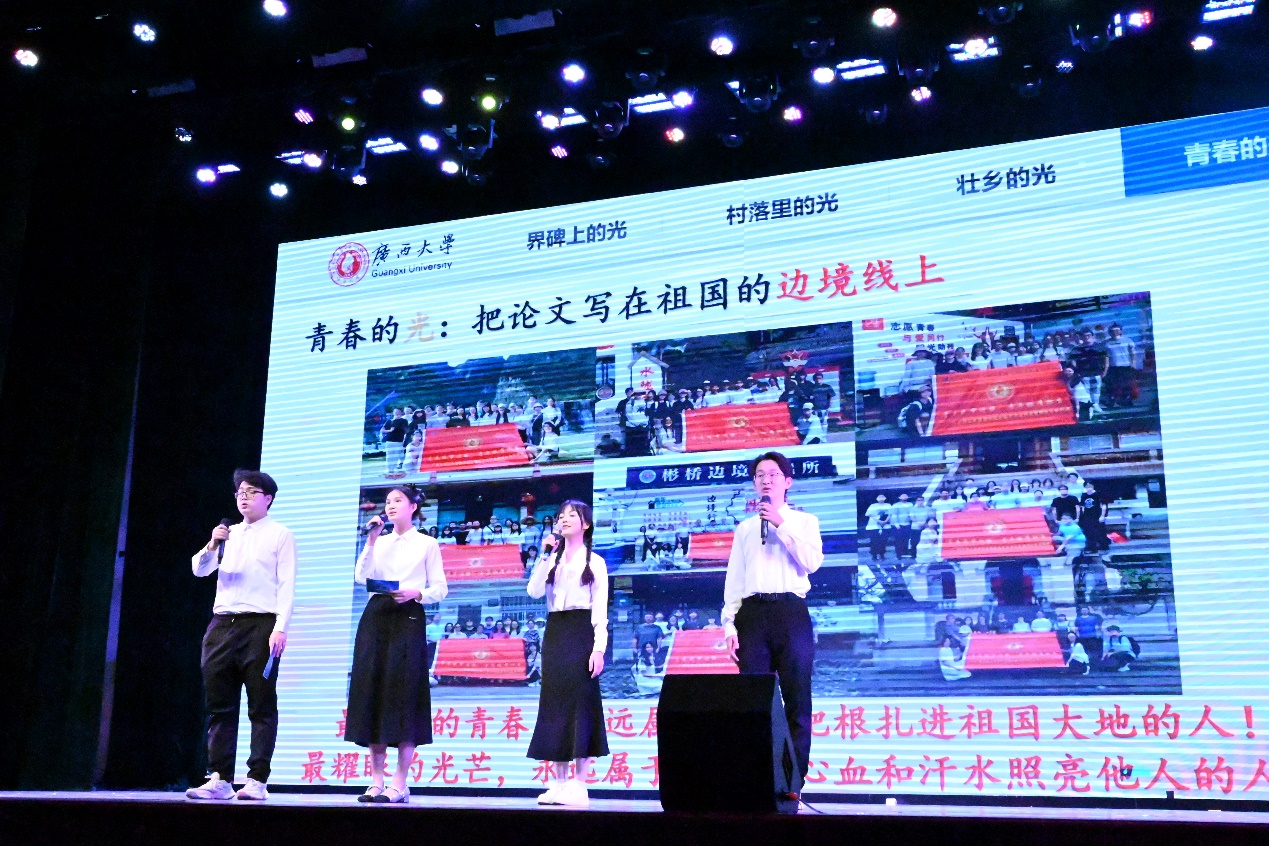 晚会第二篇章 “公”展风华 筑梦星辰 ,首先带来的是朗诵与合唱相结合的节目《我们的青春》。风雨如晦的年代里,青年先驱们以信仰为炬,在黑暗中摸索前行、开辟道路。此刻,朗诵的声音叩响时光之门,合唱的旋律漫过心头,在文字与音符的交织里,感受不同年代里“我们的青春”力量,激励新时代青年,在伟大复兴的征程上,接过精神的旗帜,勇毅前行、担当使命。