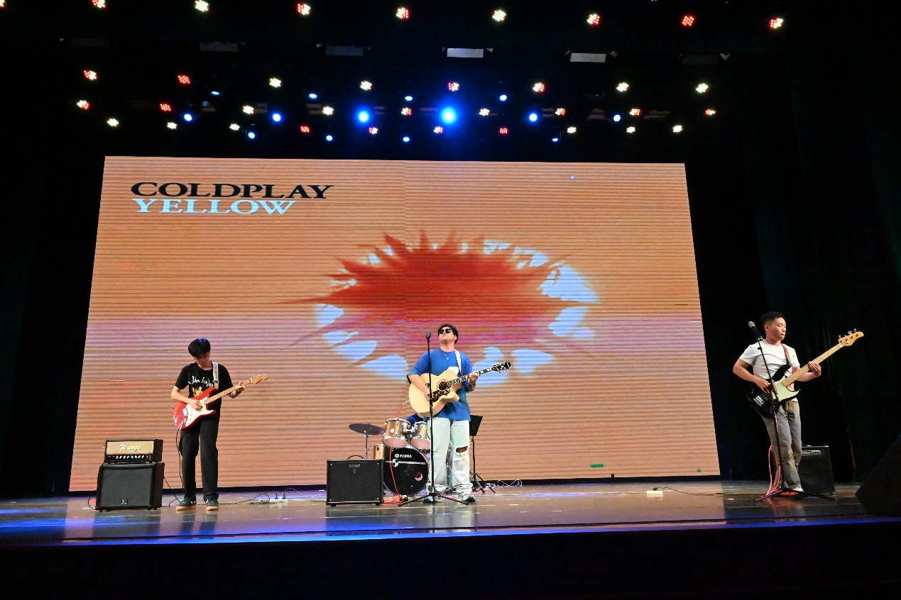 晚会第三篇章“公”行未来 共锦华景,乐队表演带来表演《胆怯过后,纵使悲伤,依旧出发》。节拍与脉搏同频共振,歌声与疾风相伴,把苦涩留在过去的昨天,纵使悲伤难抑,带着这首歌重新出发,追逐明天的太阳,成为想要成为的自己。人生道路中遍布荆棘,但青年从不缺少重新出发的勇气。
