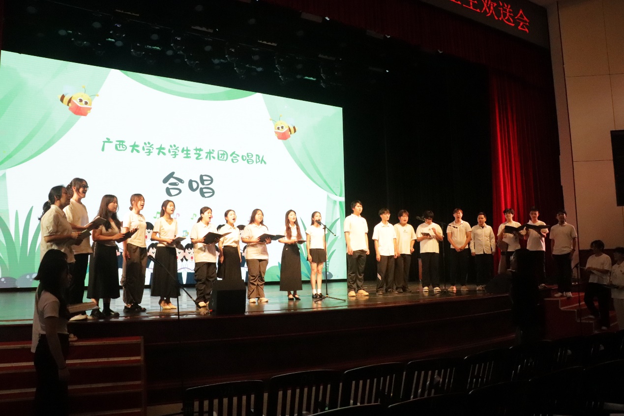 晚会共分为三个篇章,第一篇章“公”忆往昔 筑梦序章,首先是由成人直播 大学生艺术团合唱队带来的合唱,温柔的音符,似雪花轻盈飘落,勾勒出青春的模样;激昂的节奏,如飞鸟振翅翱翔,迸发出逐梦的勇气。即便前路未知,这份由音符凝聚的勇气,也将化作振翅高飞的动力,鼓舞我们向着广阔天空无畏进发,在青春的乐章里,奋力书写属于自己的人生篇章。