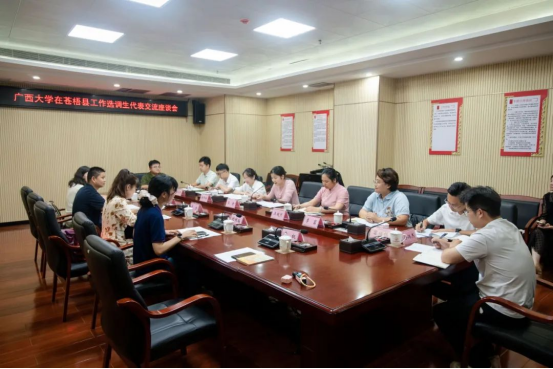 为贯彻落实学校党委关于选调生工作的重要决策部署,深入了解我校选调生在县域基层的工作现状与思想工作动态,推动选调生“君武青苗”行动落到实处,7月23日,学院党委副书记于丹,校学生工作部(处)王天亮,学院团委书记刘佩瑶,团委副书记侯俊丽一行赴梧州苍梧县走访调研选调生工作,召开选调生代表座谈会。苍梧县县委常委,组织部长吴静,县委组织部副部长潘烨娴以及成人直播 选调生代表出席座谈会。