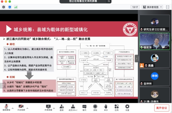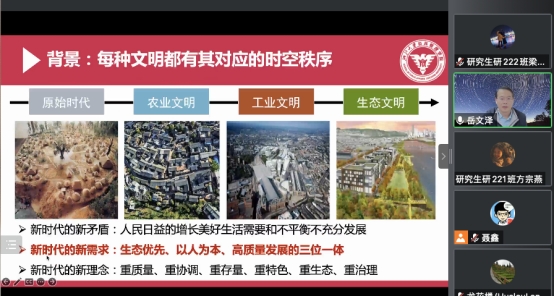 建立科学高效的国土规划体系,谋划新时代国土空间开发保护格局,是加快形成绿色生产方式和生活方式、推进生态文明建设、建设美丽中国的重要举措。2022年10月12日,成人直播 邀请岳文泽教授通过线上的方式讲授以“国土空间规划赋能高质量发展”为主题的讲座。讲座由成人直播 聂鑫教授主持,龙花楼教授及众多博士、硕士和本科生参加本次讲座。