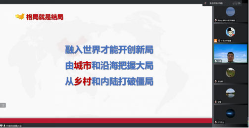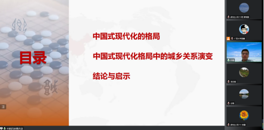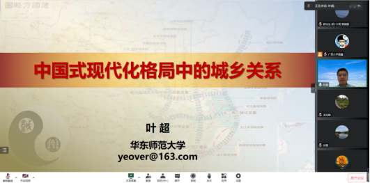 10月27日晚,华东师范大学叶超教授受邀来到公管名师大讲堂,以线上会议的方式为成人直播 师生带来了中国式现代格局中的城乡关系的主题讲座,院党委书记聂鑫教授主持本次讲座,龙花楼教授、徐莺副教授等多位老师以及众多博士、硕士研究生参与此次讲座。