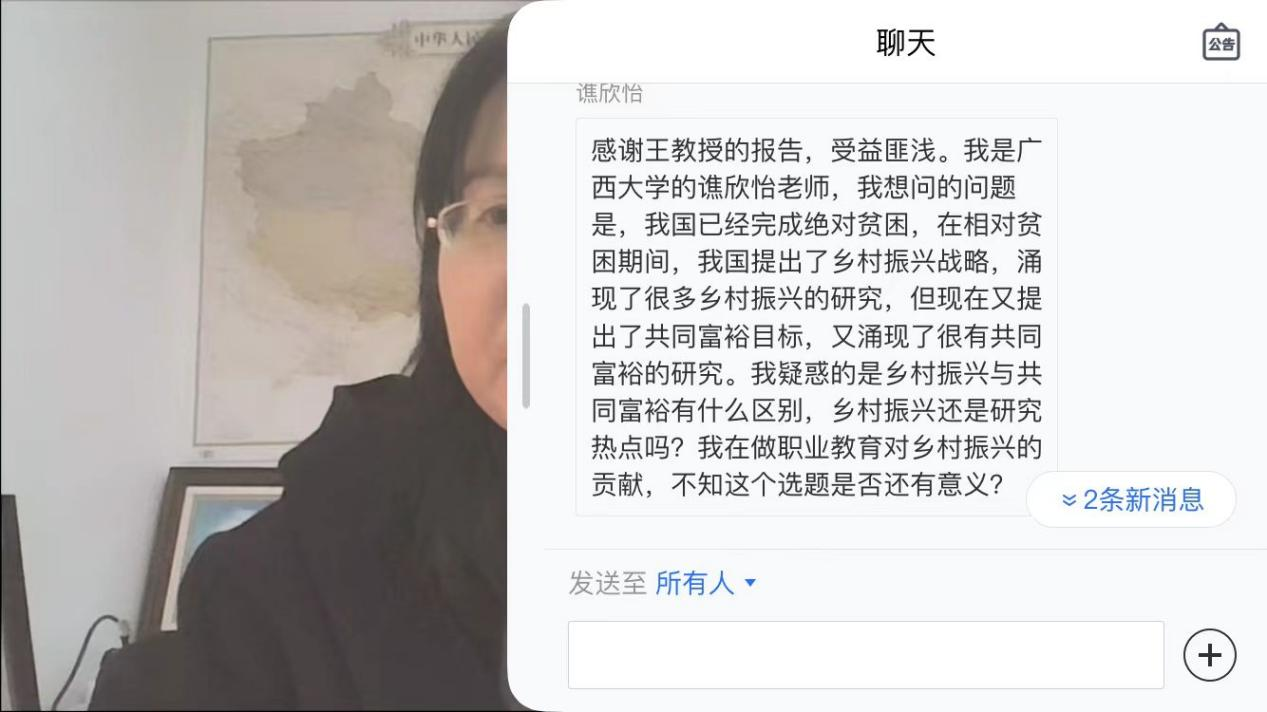 最后,王教授与参与讲座的师生开展了线上互动,详细解答师生提出的问题。魏副院长对王教授的精彩讲座致以诚挚的感谢,并邀请王教授到成人直播 与西大的师生做面对面的交流。本次学术讲座让师生们更加了解国内外的贫困研究状况,激发了老师们申请国家社科基金的热情,引起了同学们对我国贫困问题的思考和重视,增强了大家的民族使命感和爱国情怀。