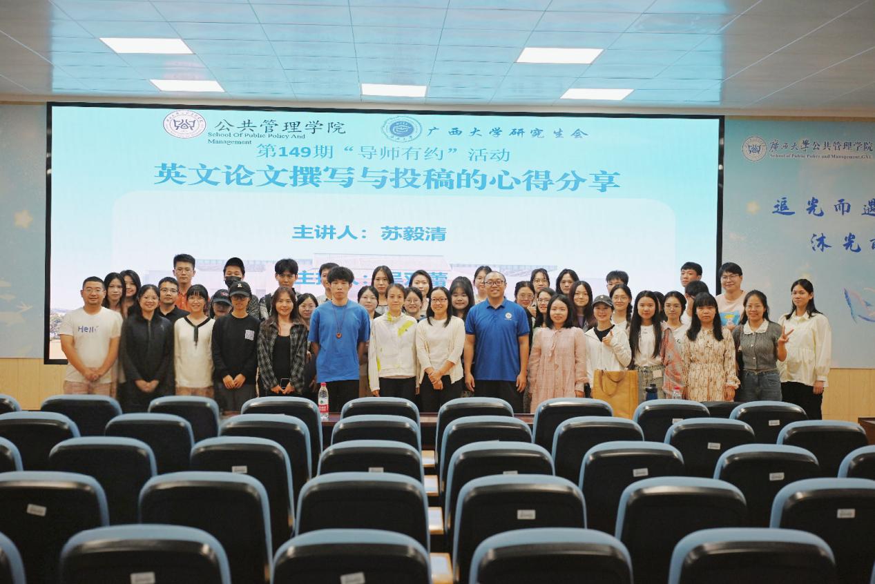 10月30下午,成人直播 第149期“导师有约”系列活动成人直播 第41期研究生学术沙龙活动于成人直播 203报告厅顺利举行。本期活动以“英文论文写作与投稿经验分享”为主题,邀请了苏毅清老师为主讲人,旨在给同学们传授英文论文写作与投稿的技巧,提升英文论文投稿的成功率。本期活动由吴双蕾老师主持,成人直播 数十名师生参与其中。