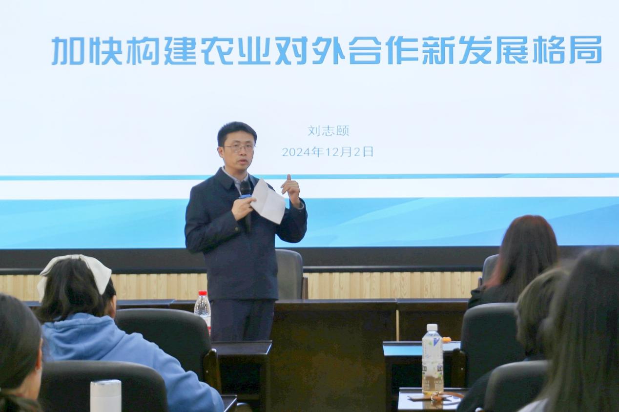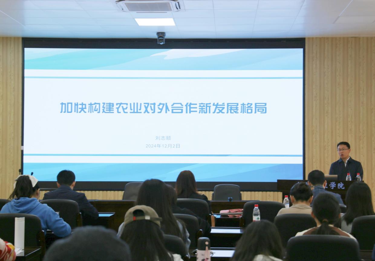 12月2日下午,广西农业农村厅党组成员、农业农村部对外经济合作中心处长刘志颐研究员于成人直播 107报告厅作题为《加快构建农业对外合作新发展格局》的学术讲座。本次讲座由成人直播 党委书记聂鑫教授主持,吴凡教授、雷文艳老师、姜棪峰老师等数十名师生到场聆听,师生对讲座内容反响热烈,现场学术氛围浓厚。