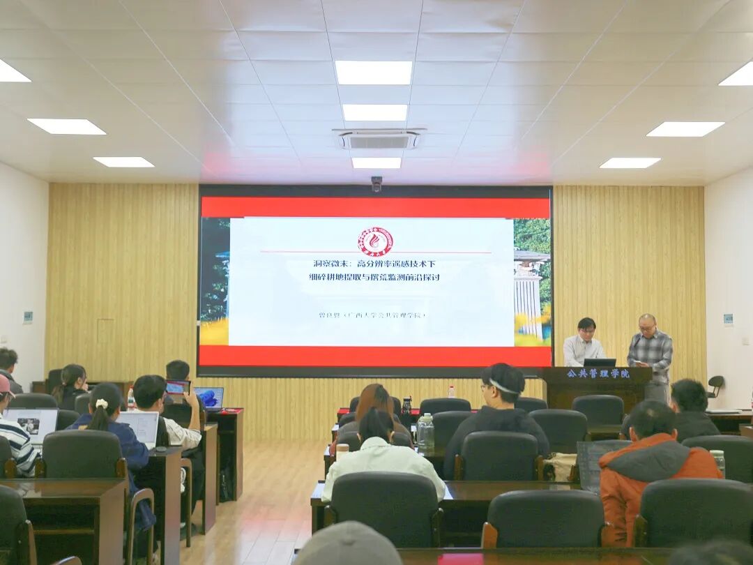 此外,聂鑫还提到,除了识别撂荒耕地,研究者们还应从公共政策过程和行政管理层面进行剖析,理解耕地撂荒背后的驱动因素,为完善公共政策、提高行政绩效提供理论和技术支持。这既为在场师生提供了新的研究思路,也激发了他们对学习和利用遥感技术的浓厚兴趣。吴双蕾、徐云鹏分别围绕大体量数据的稳定处理、高分辨率遥感技术与洪水灾害防治与曾良恩展开交流。现场师生踊跃发言,学术氛围十分热烈,大家的学术思想在交流中不断碰撞,拓宽了研究视野,激发了新的研究灵感。