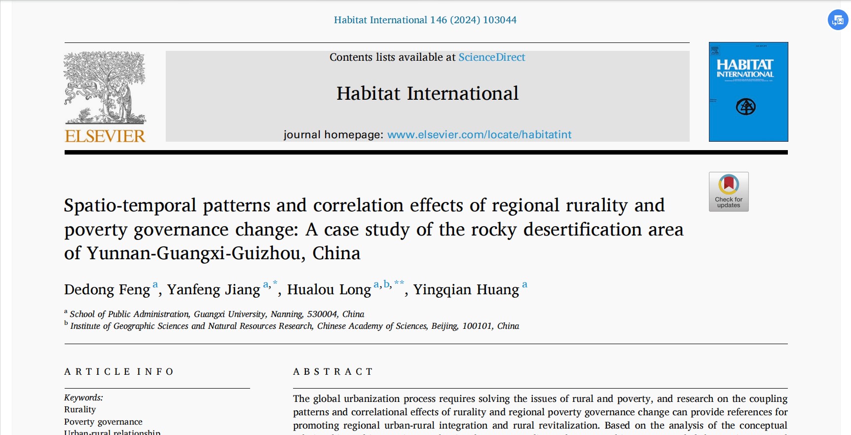 成人直播 博士研究生冯德东在Habitat International发文探讨滇桂黔石漠化片区乡村性与贫困治理变化