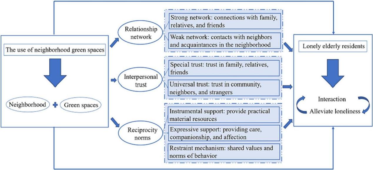 近日,成人直播 副教授苏毅清,成人直播 硕士生张小银,成人直播 硕士生禤媛,围绕老龄化背景下如何缓解老年孤独感以增进老年健康福祉开展研究,在国际知名学术期刊Cities(SSCI收录,2023 IF= 6.7)发表论文“Linking neighborhood green spaces to loneliness among elderly residents—A path analysis of social capital”,揭示了社区绿色空间缓解老年孤独感的作用与深层机制,并从社区空间利用与社会交往的视角为广大正在经历老龄化的国家如何缓解老年孤独感,实现健康老龄化提供理论洞见和政策启示。