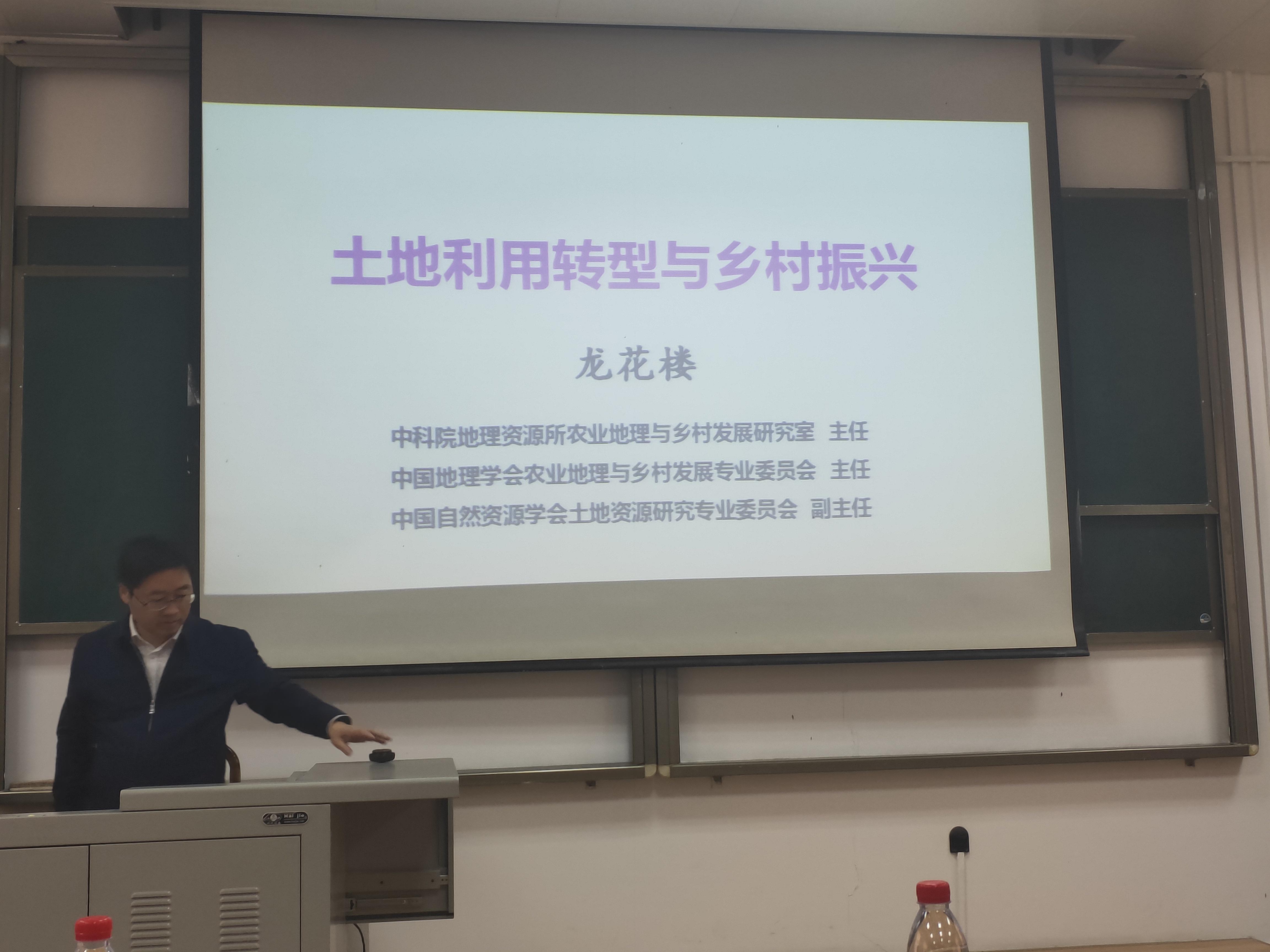 12月5日下午,中国科学院地理科学与资源研究所研究员、博士生导师、农业地理与乡村发展研究室主任,中国科学院精准扶贫评估研究中心副主任,中国科学院大学岗位教授龙花楼受邀到成人直播 107学术报告厅开展了题为“土地利用转型与乡村振兴”的学术报告。