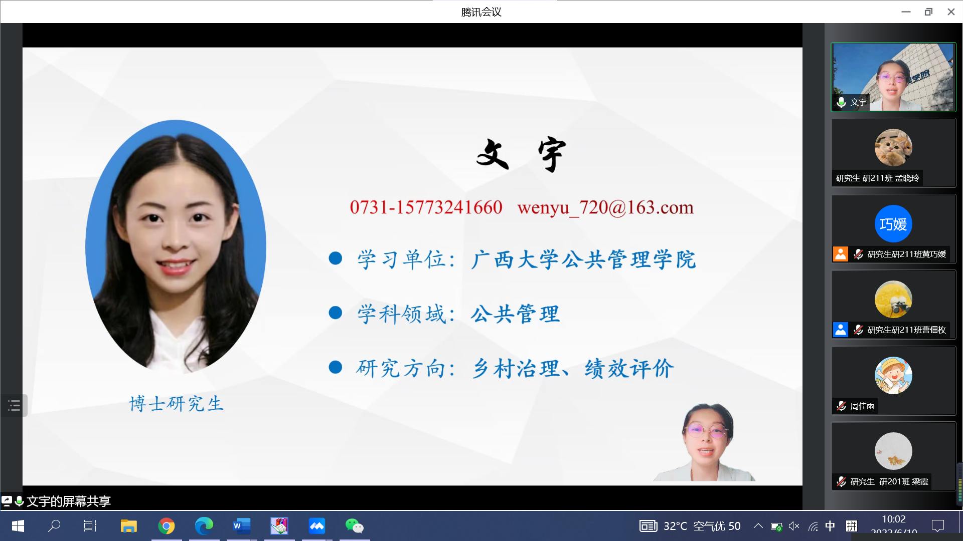 2022年6月10日10:00,成人直播 第25期学术沙龙以腾讯会议的形式顺利开展。本期学术沙龙的主题为“公共政策与乡村治理”,邀请成人直播 苏毅清老师参与讨论,文宇、李莹两位同学作为分享人分别就她们的论文进行分享,吸引了成人直播 众多博士生、硕士生前来参加。本期沙龙由学术部黄巧媛同学主持。