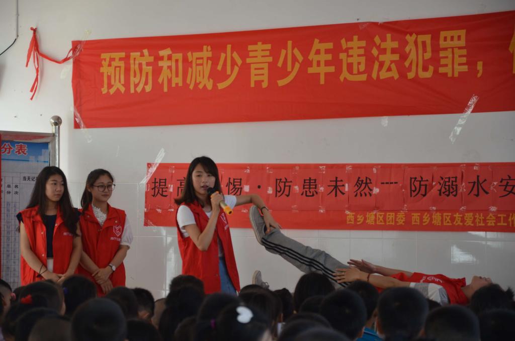 2018525日上午,石埠街道团工委组织开展青少年自护宣传教育进校园活动,成人直播 2017级研究生第一党支部全体党员作为大学生志愿者与工作人员一起到石埠中心小学开展“提高警惕,防患未然”防溺水安全教育活动,为小学同学们现场宣讲防溺水安全知识,提高小学生安全意识,增强小学生自救能力。