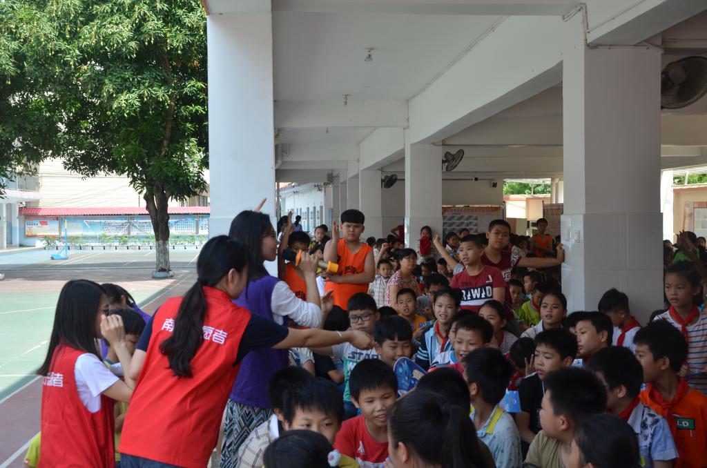 随后,志愿者们还向小朋友们发放了《安全教育手册》以及举办了有奖竞答活动,使小朋友们在竞答中巩固了刚才所学的防溺水知识,在小朋友们的踊跃答题中,志愿者手中的礼品也尽数散去,看到他们都能正确回答问题,志愿者们都表示十分开心。